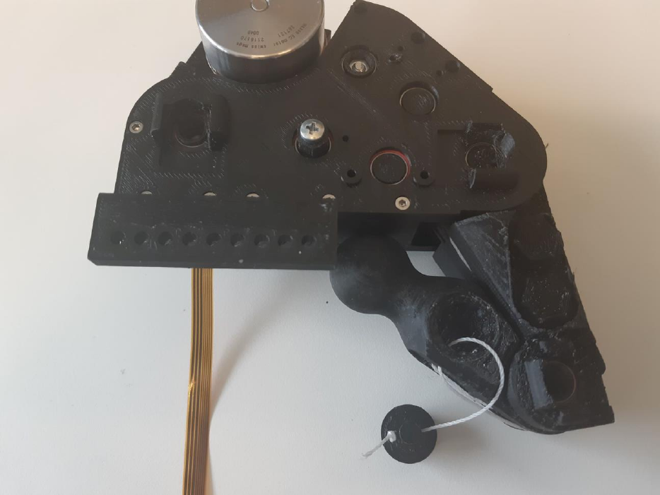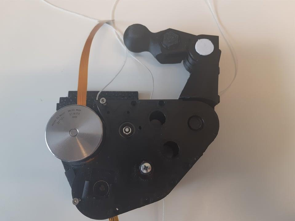 Turn the motor until it reaches the end position. Take the tendon end that will be tightened by moving it