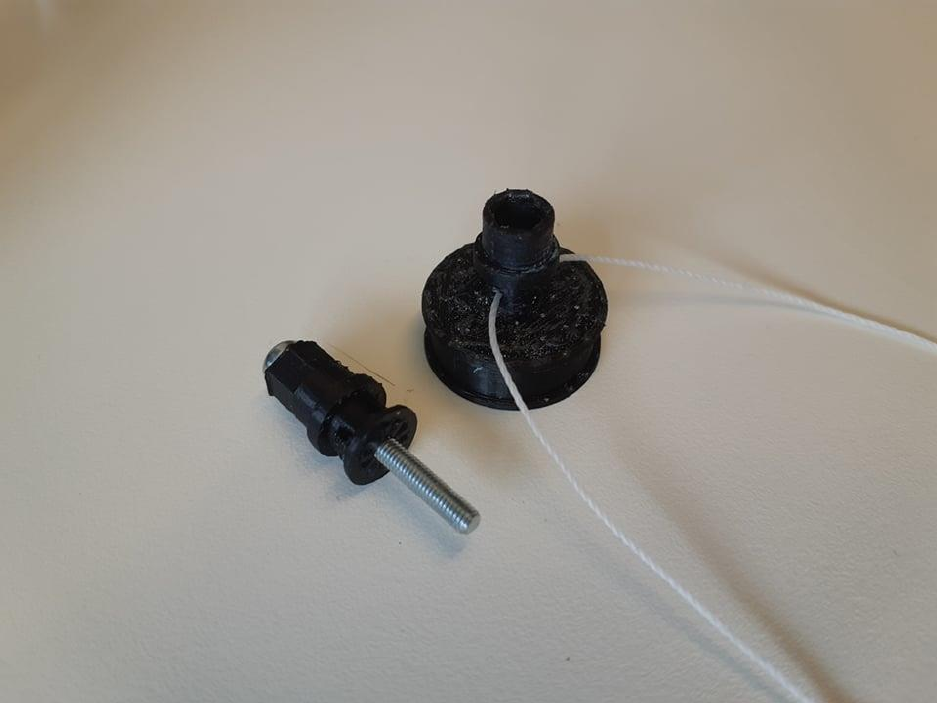 Use the bolt to push the string out of the hole in the middle of the gearspindle. The string will later be