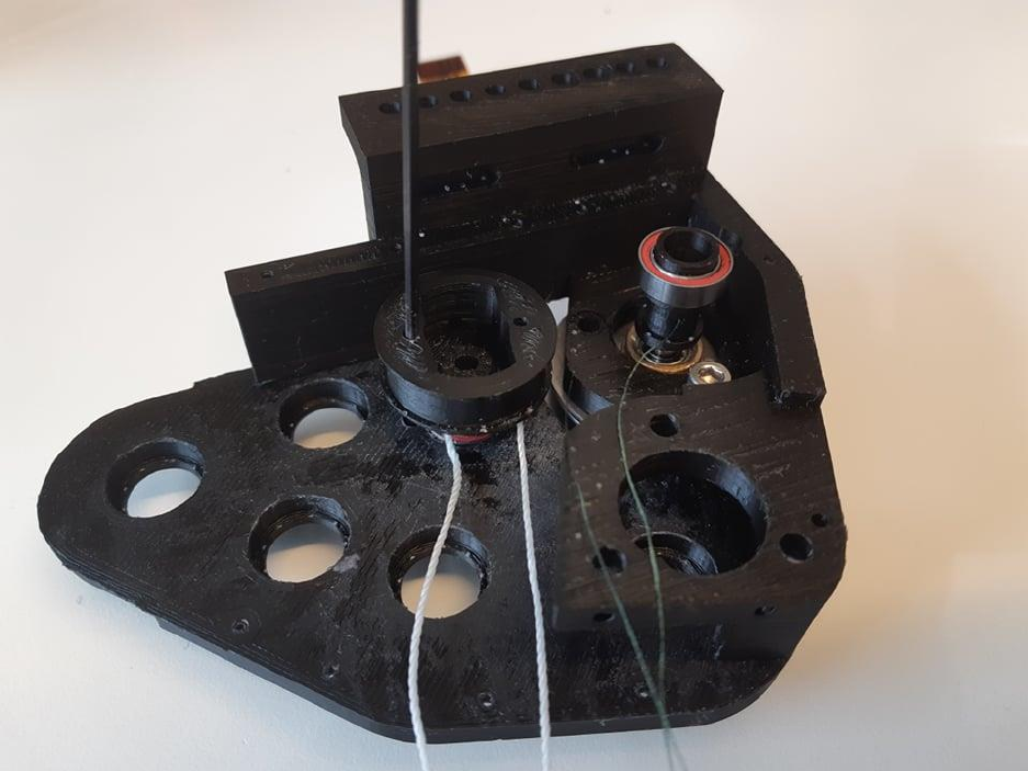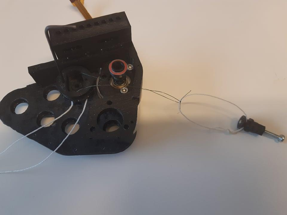 Insert 1m of string through the locking hole of the gear spindle. Insert the 30mm M3 bolt through the
