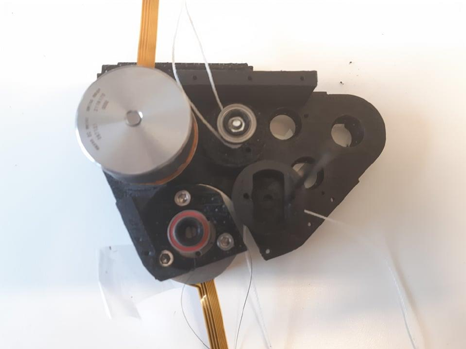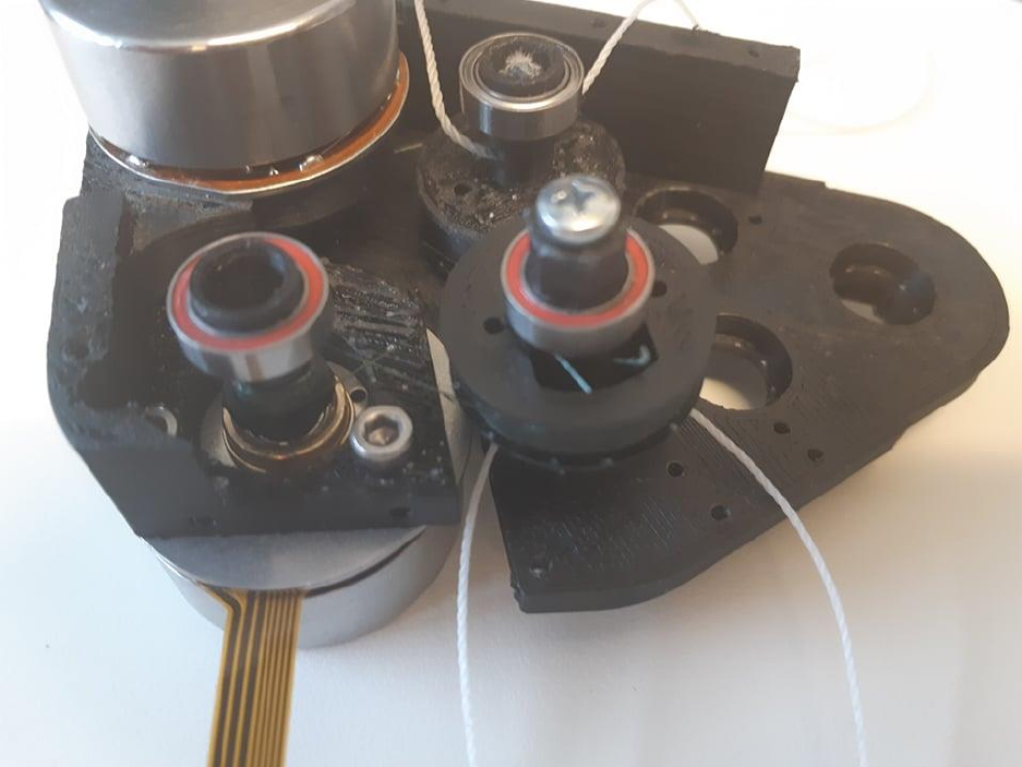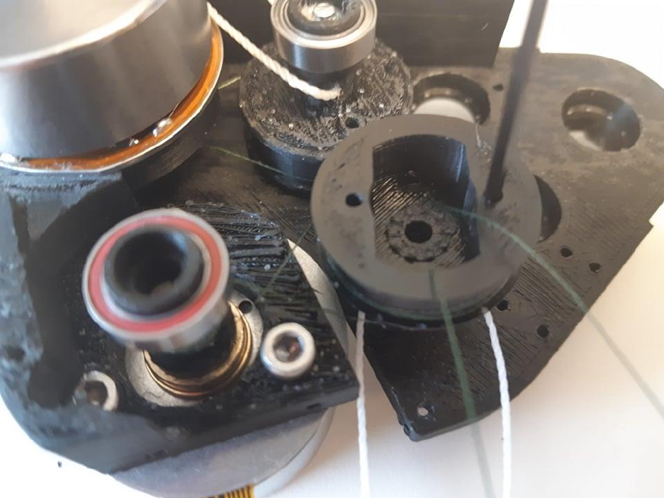 The other side of the string goes directly from the motor spindle and is wound around the gear spindle