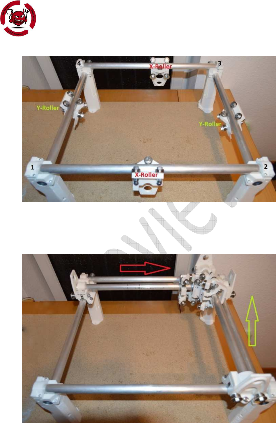 move it back to the lower left corner. Now tighten all screws of the remaining lower X Roller_F and of