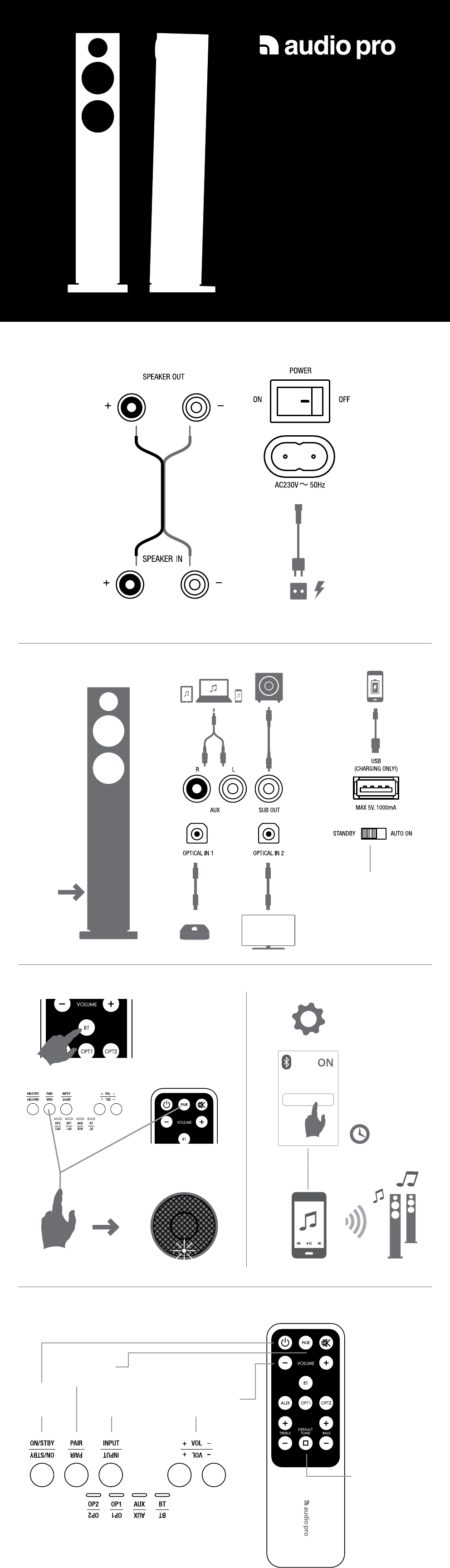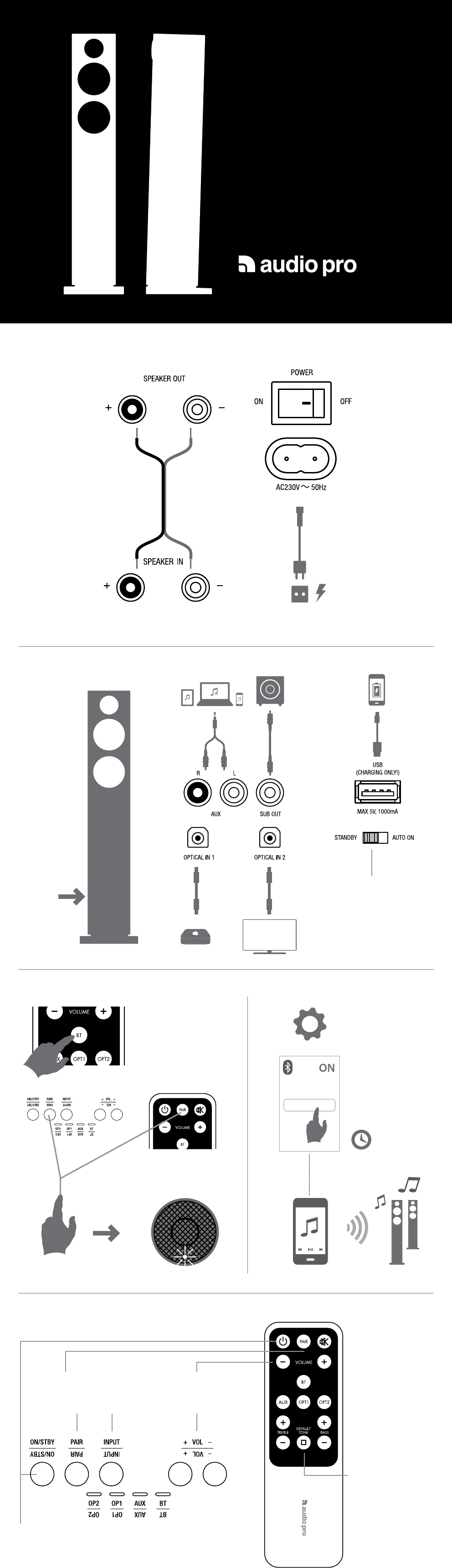 Audio Pro®, the Audio Pro logotype, the ‘a’ symbol, and ace-bass® are all registered trademarks of Audio