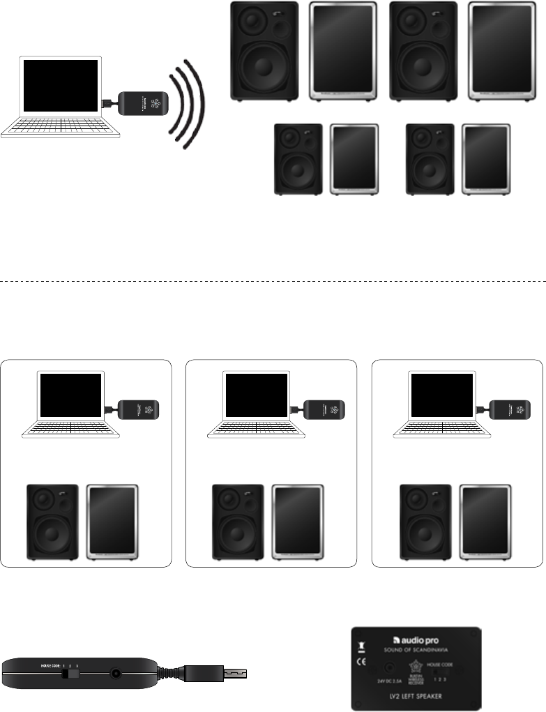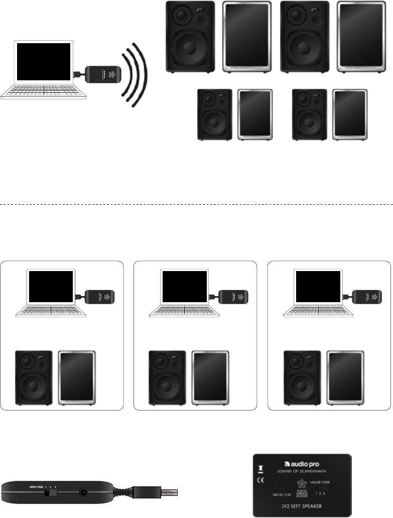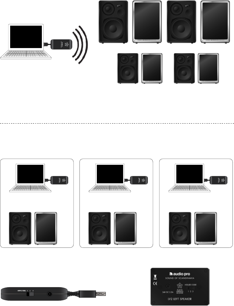 Airport Express, stereo, radio, etc. TX100 behöver då en USB strömadapter,