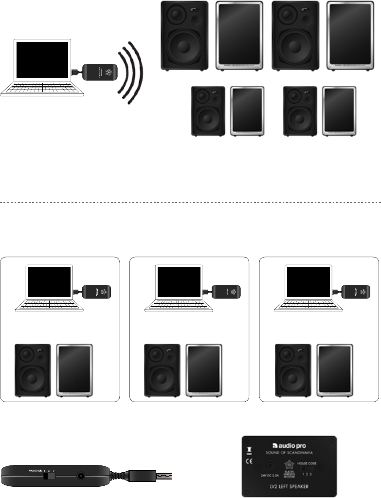 - Inbyggd trådlös mottagare i varje högtalare
