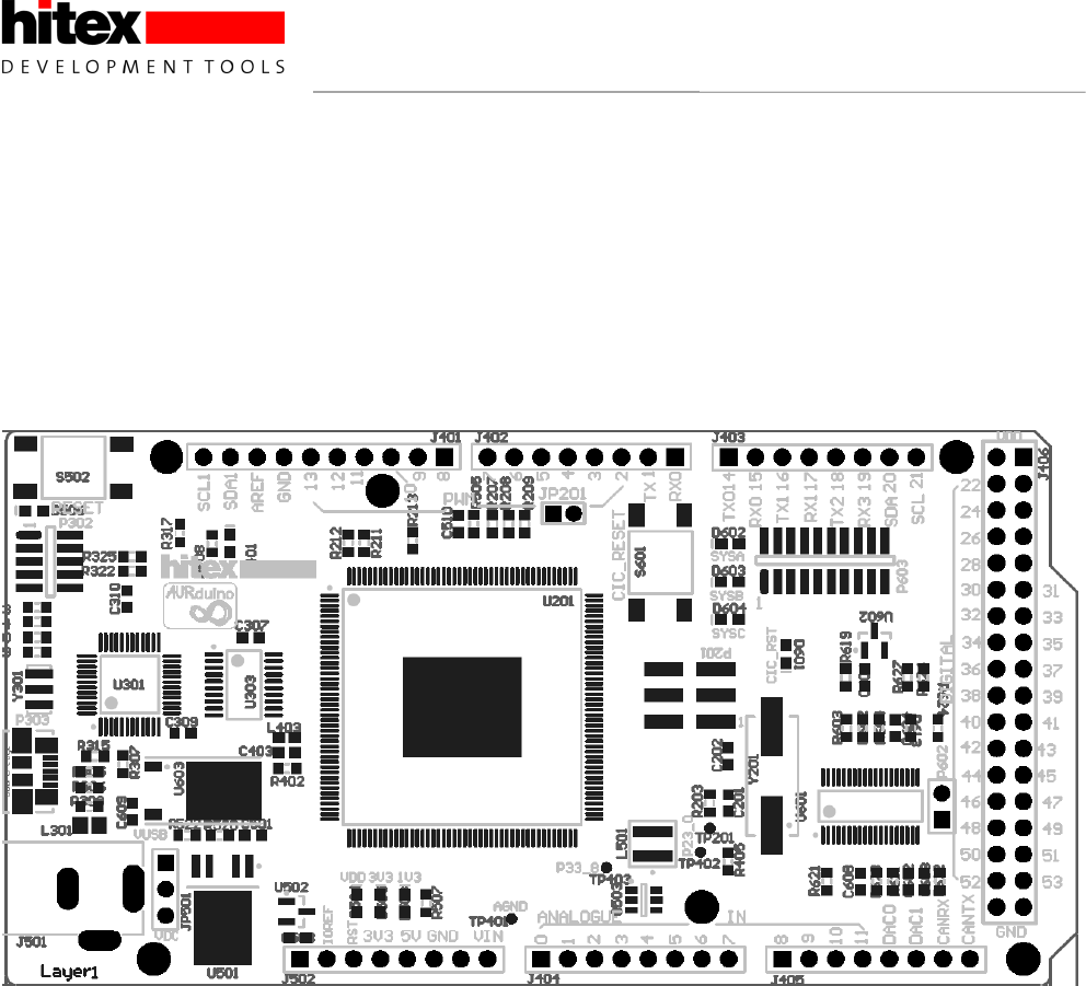 power source to be selected. The jumper position towards the centre of the board selects USB power.