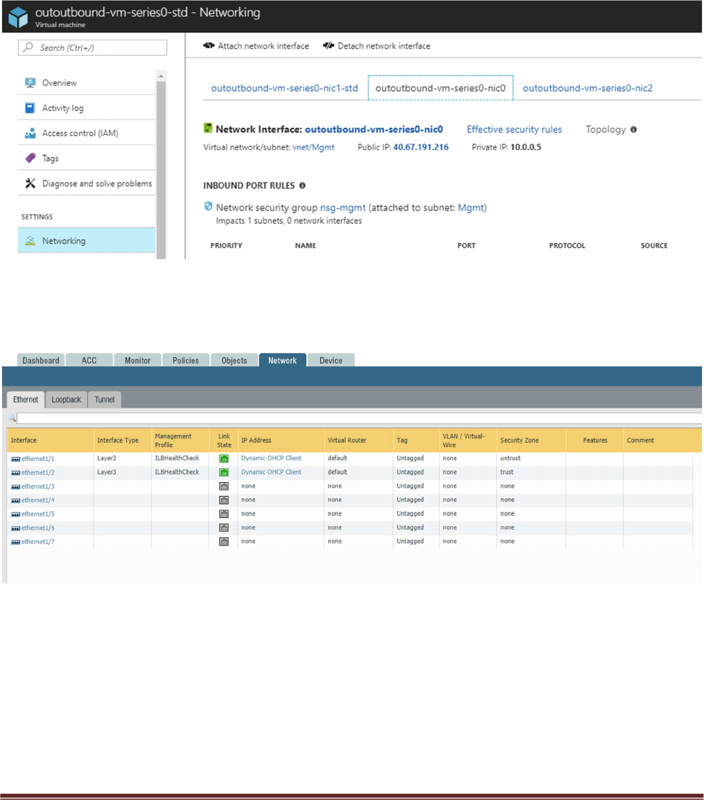 The Hub VNet consists of Mgmt , Untrust and Trust subnets. An Azure internal LB[Outbound-LB] used for