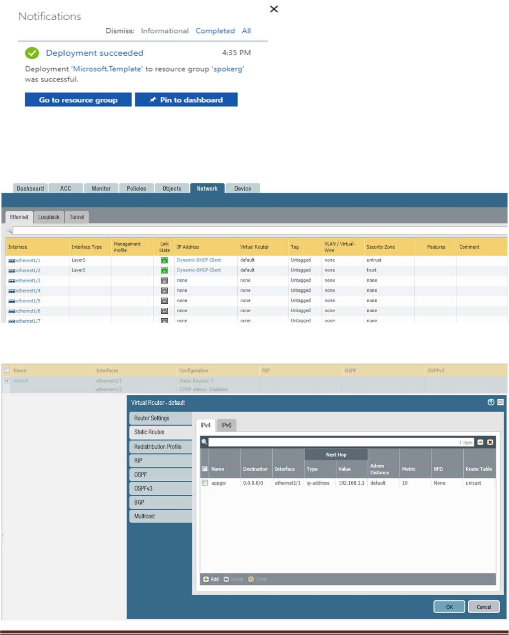 1. To successfully deploy your spoke template, the hub VM-Series firewalls must but up,