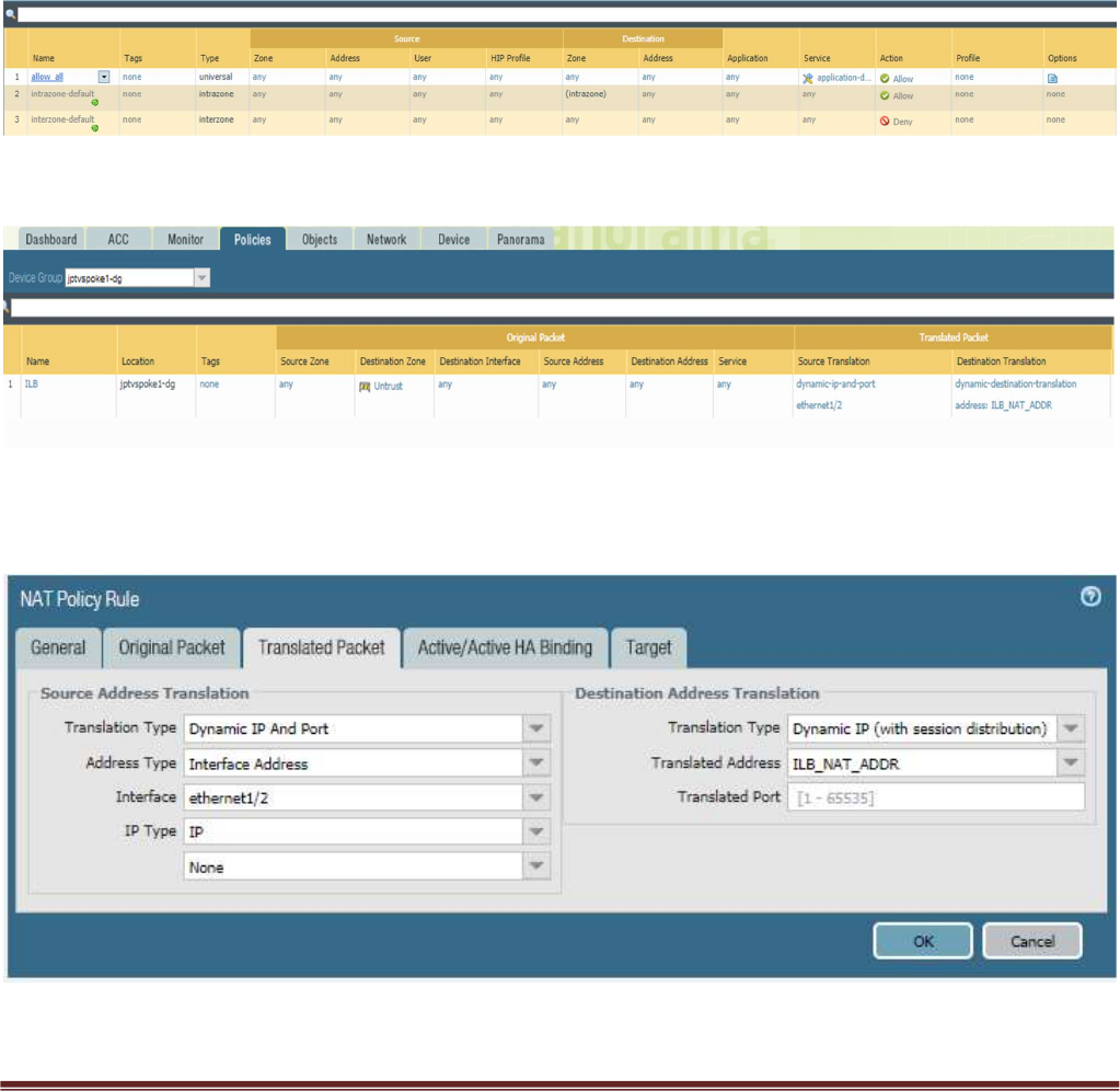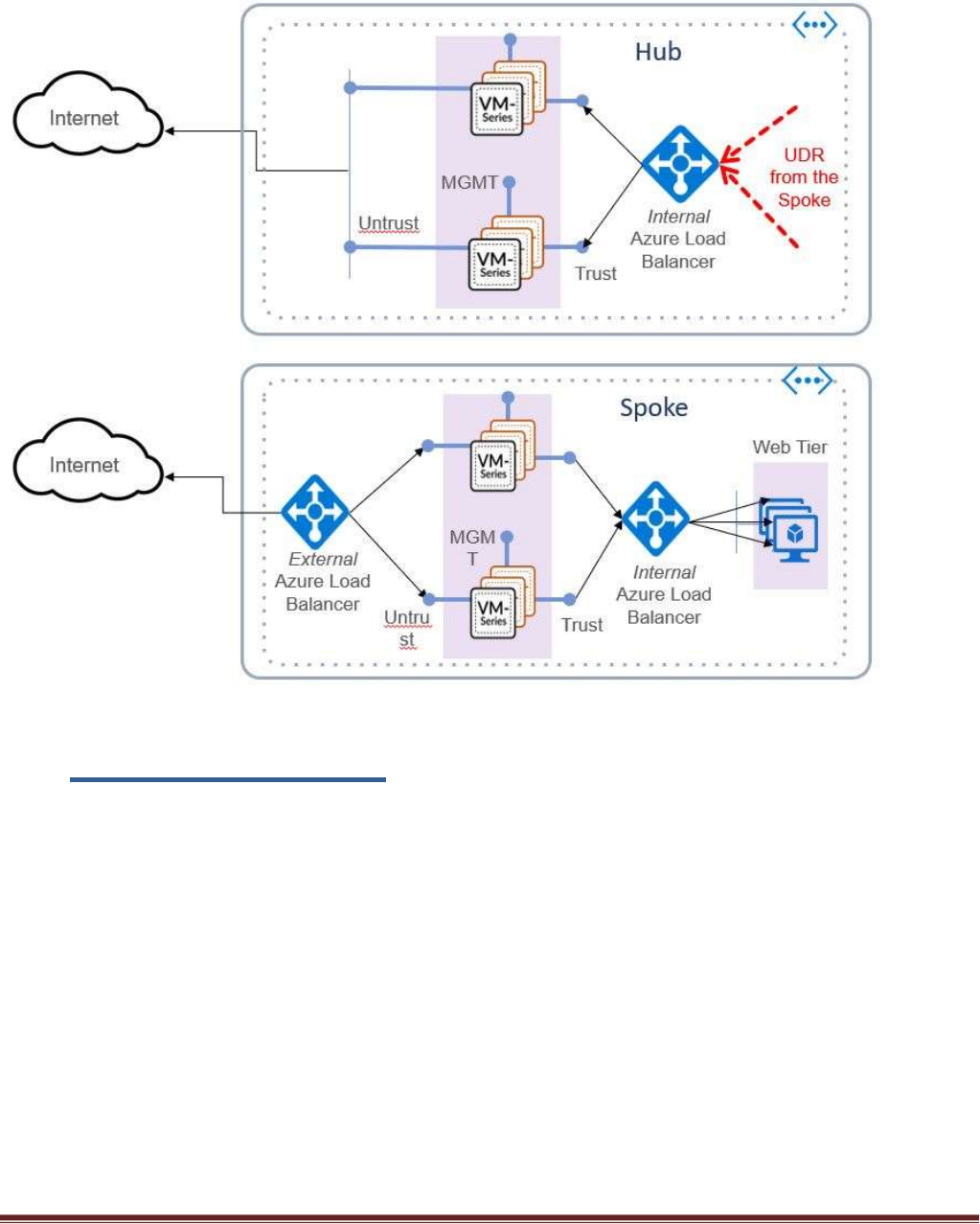 internal load balancer for packet forwarding to the Hub VM-Series Firewalls. Traffic flowing through the