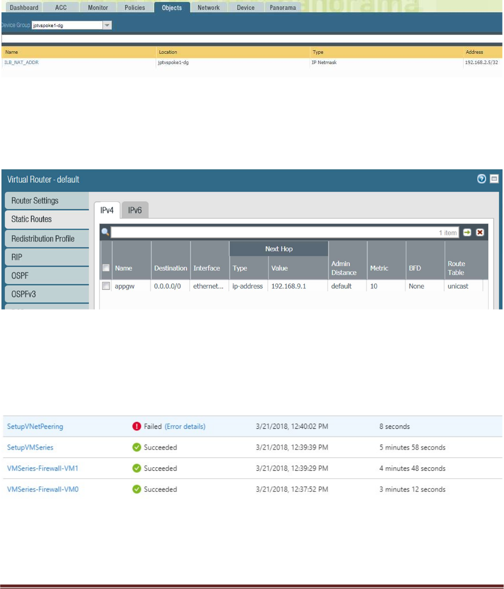 configured route, be sure to add the new spoke subnet to the hub firewall VM-Series static