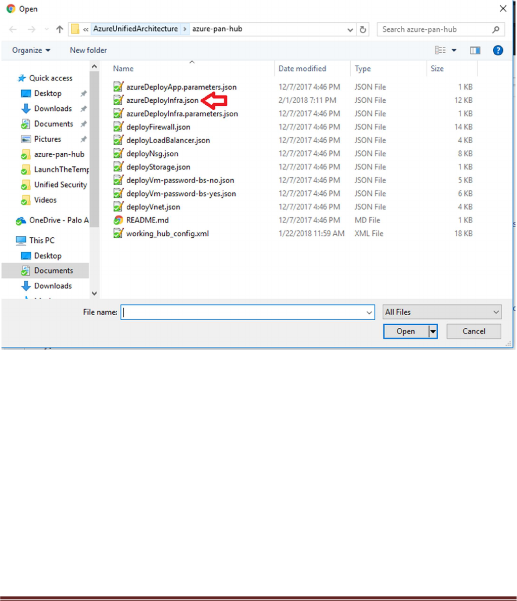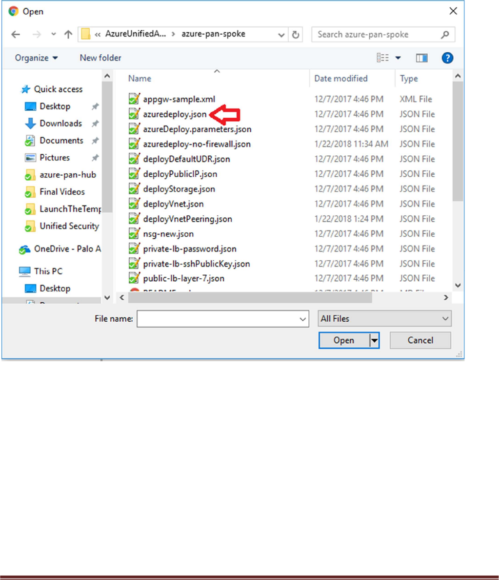 Select “azuredeploy.json“ file from the Azure-Transit-VNet/azure-pan-spoke directory that you cloned