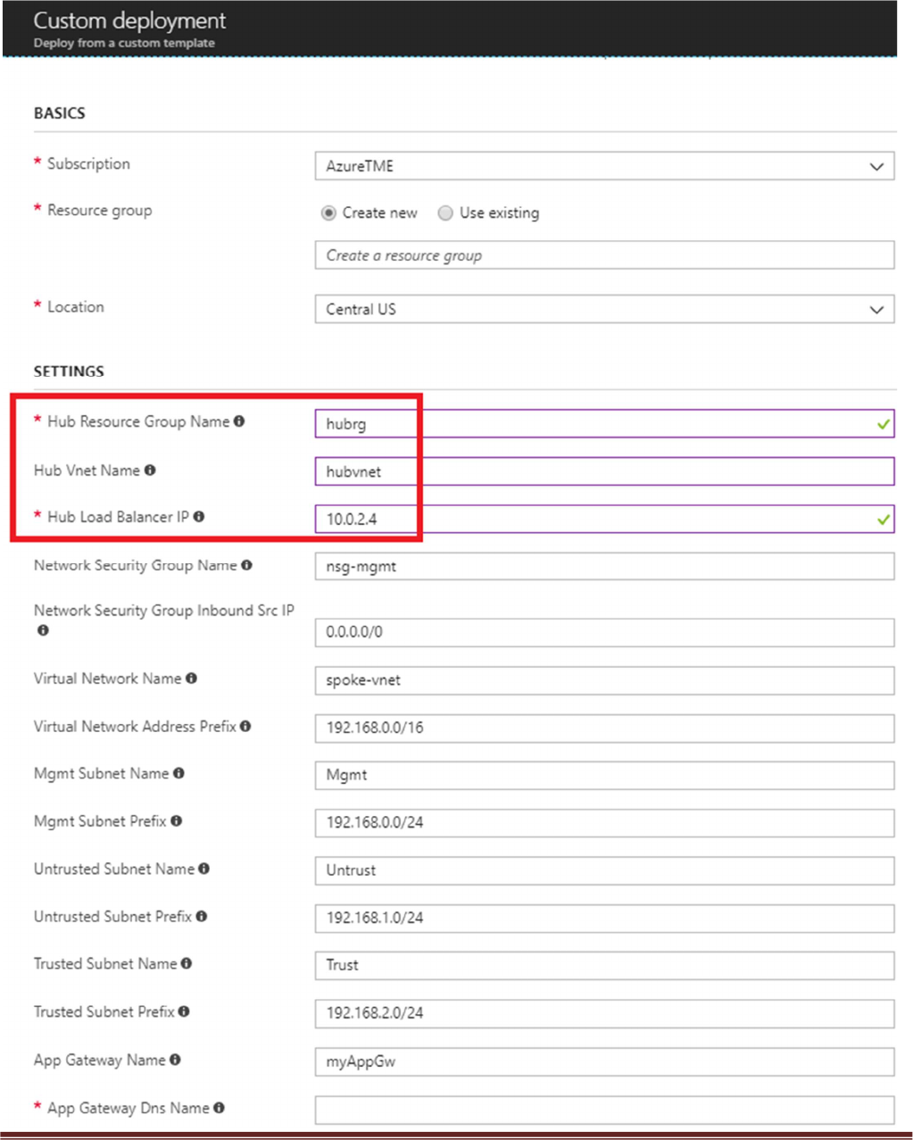 f. Hub Load Balancer IP – Use the static IP given to the Load Balancer in the created in the hub
