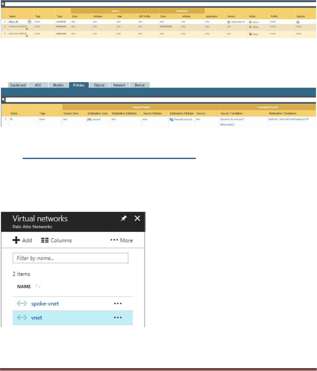 the Hub VNet. User Define Routes are used to route spoke traffic to the Hub internal load balancer for