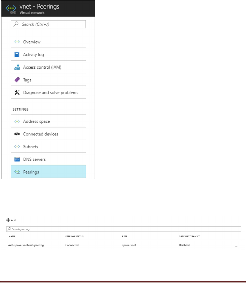 VNet and Spoke VNet. To check this in Azure navigate to Virtual Networks > select the VNet