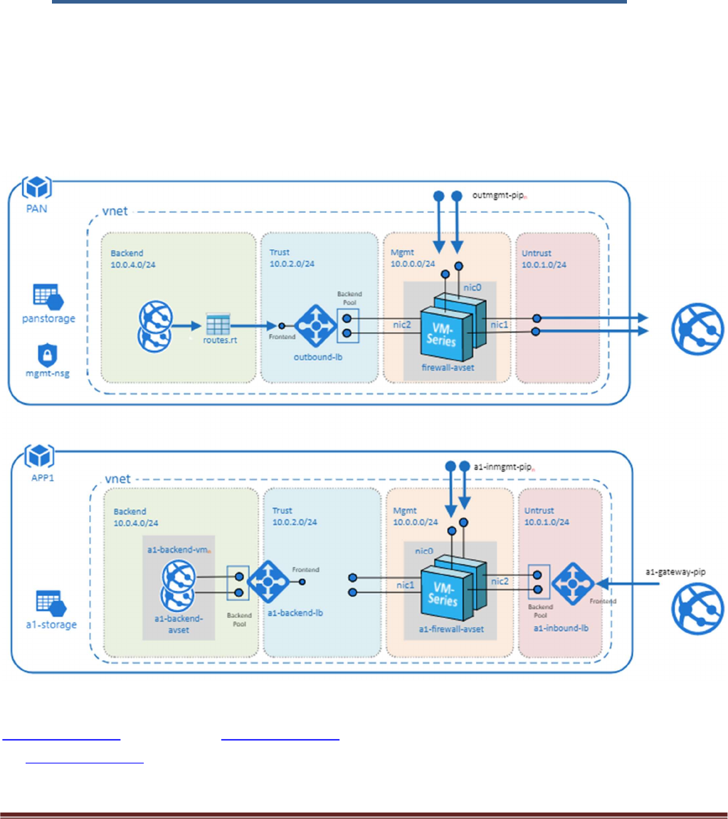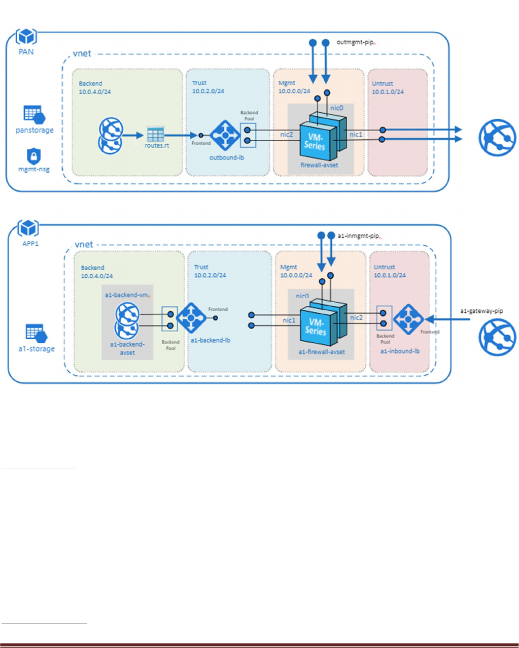 VNets. This secured outbound internet access is provided by two VM-Series firewall pairs positioned