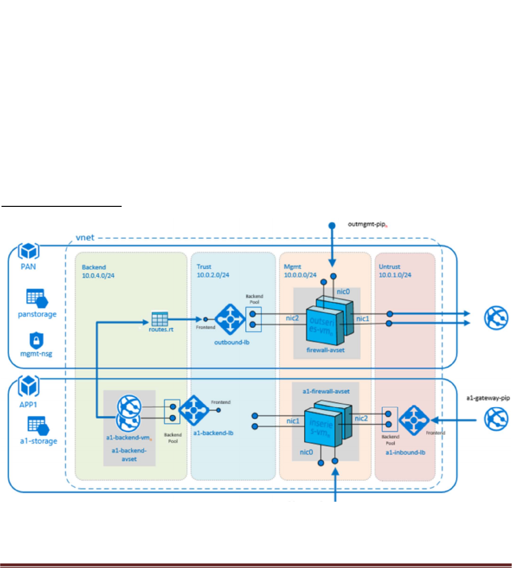 In Figure 1 PAN represents the Hub VNet. The Hub VNet consists of Mgmt , Untrust and Trust subnets. An