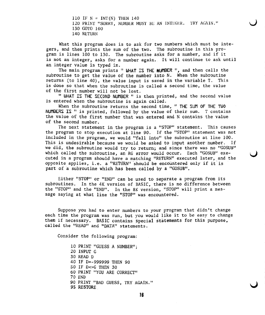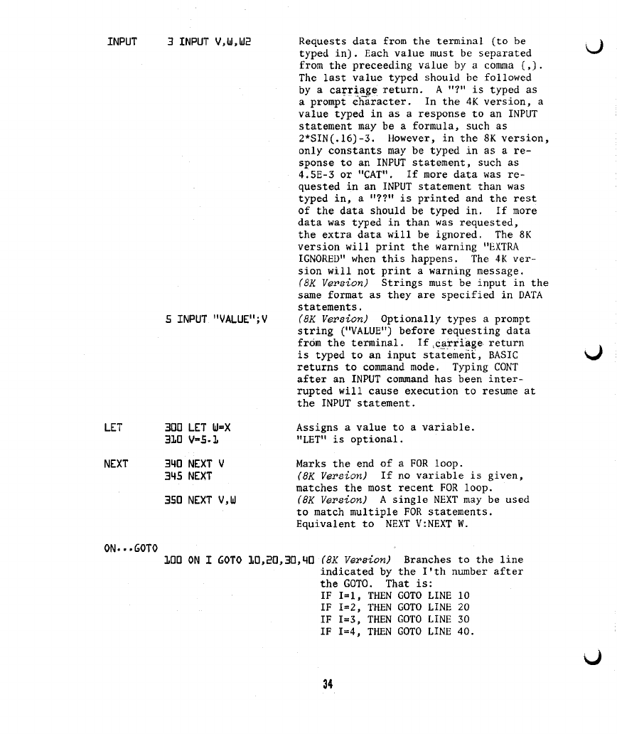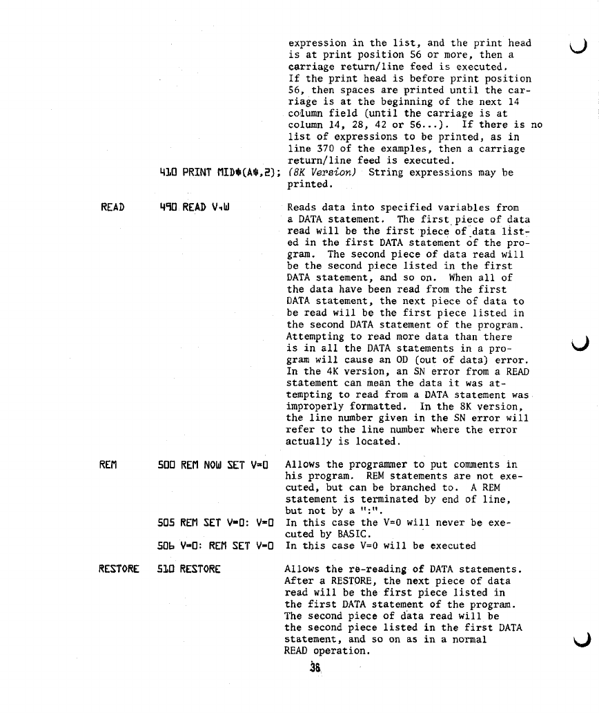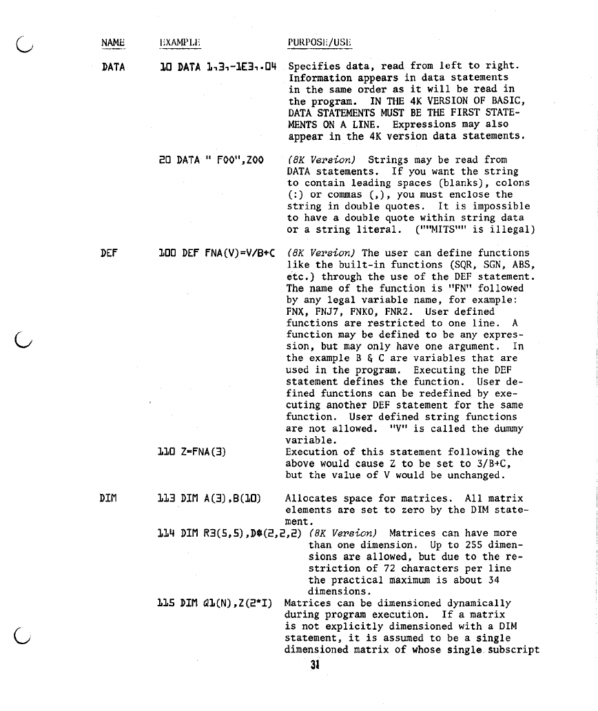 4) On page 30, under the "DATA" statement, the sentence "IN THE 4K VERSION