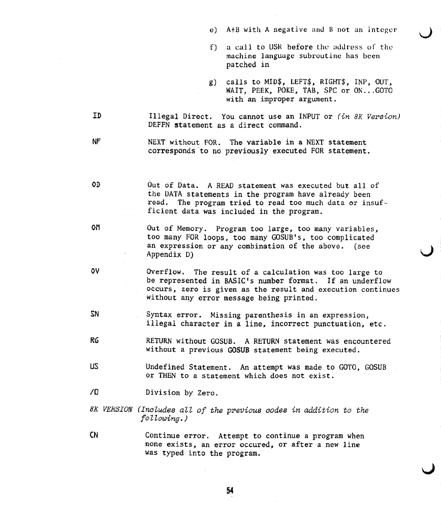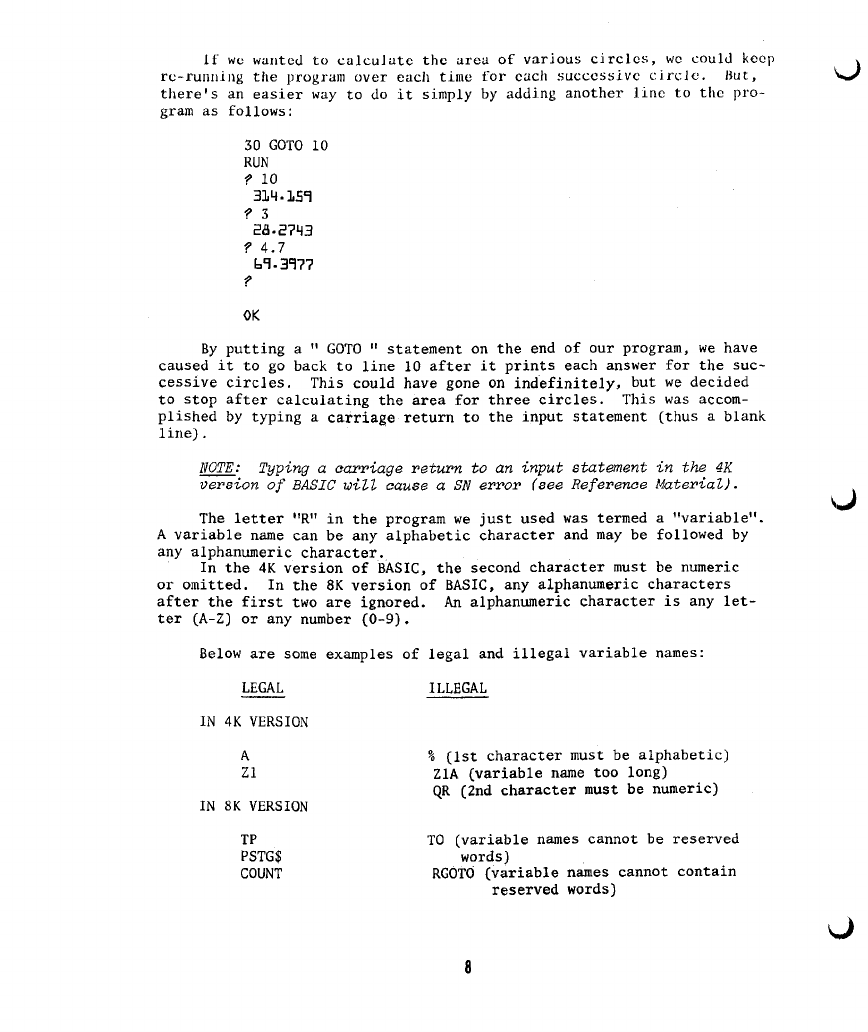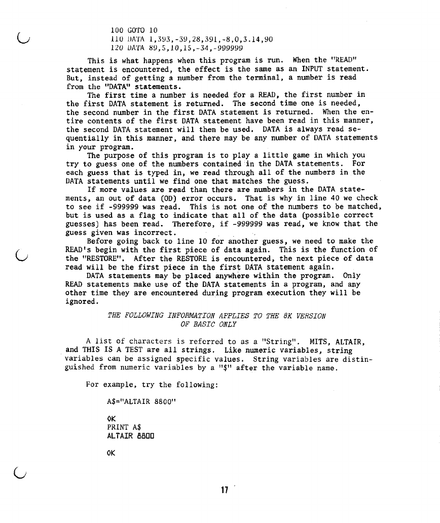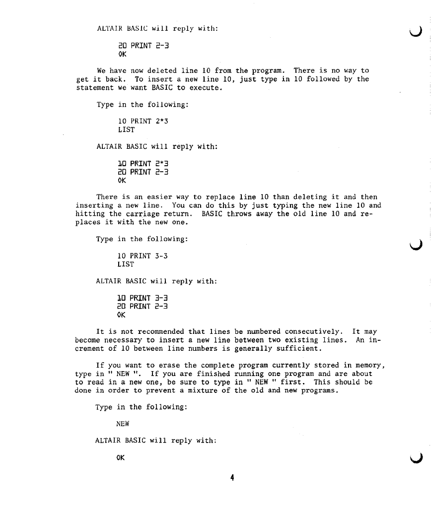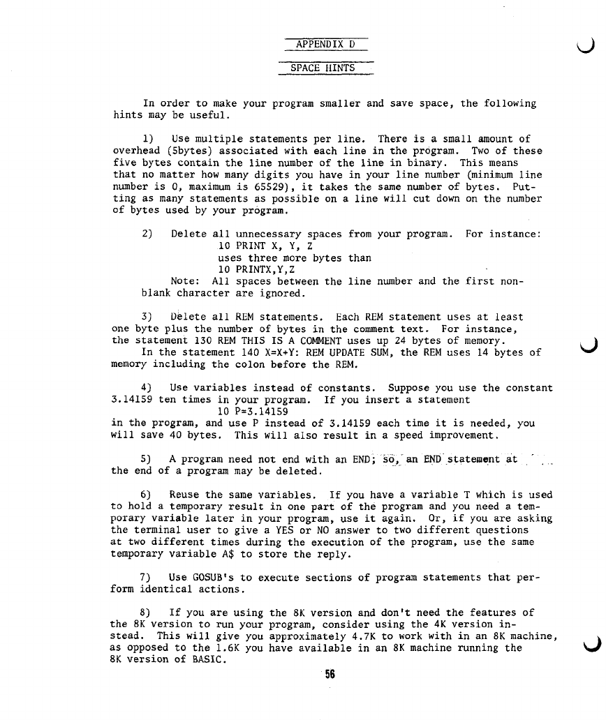 4) On page 30, under the "DATA" statement, the sentence "IN THE 4K VERSION
