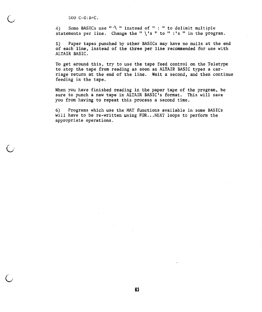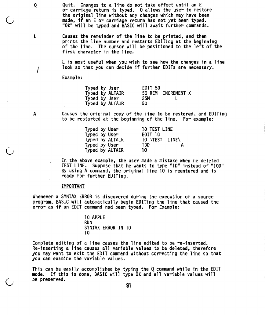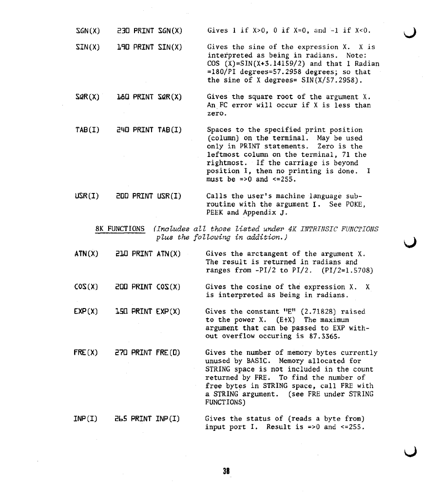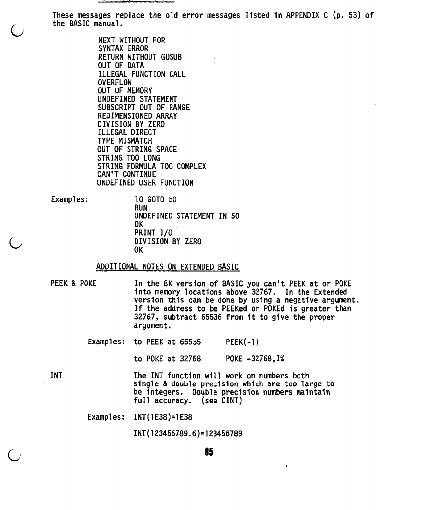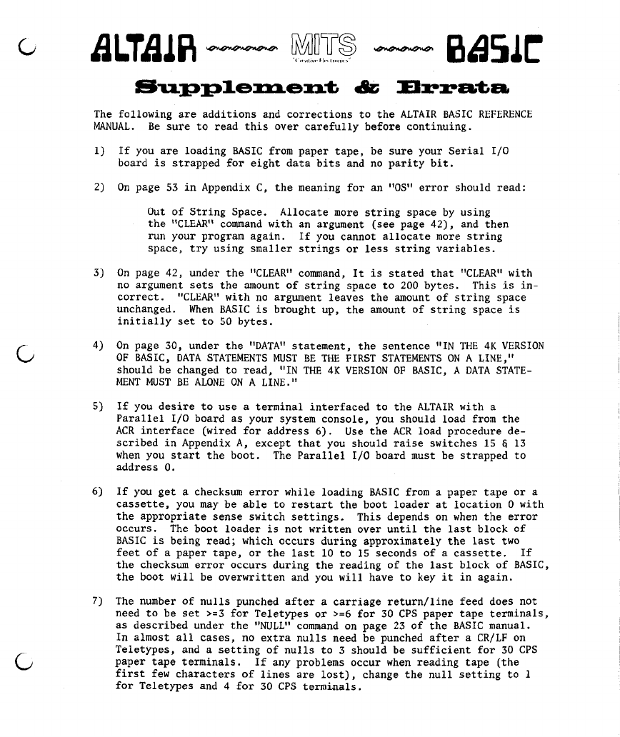 The following are additions and corrections to the ALTAIR BASIC REFERENCE