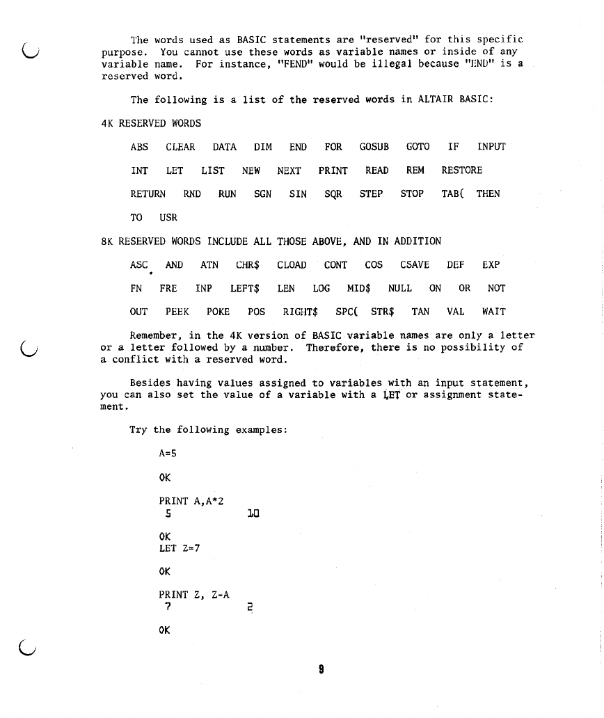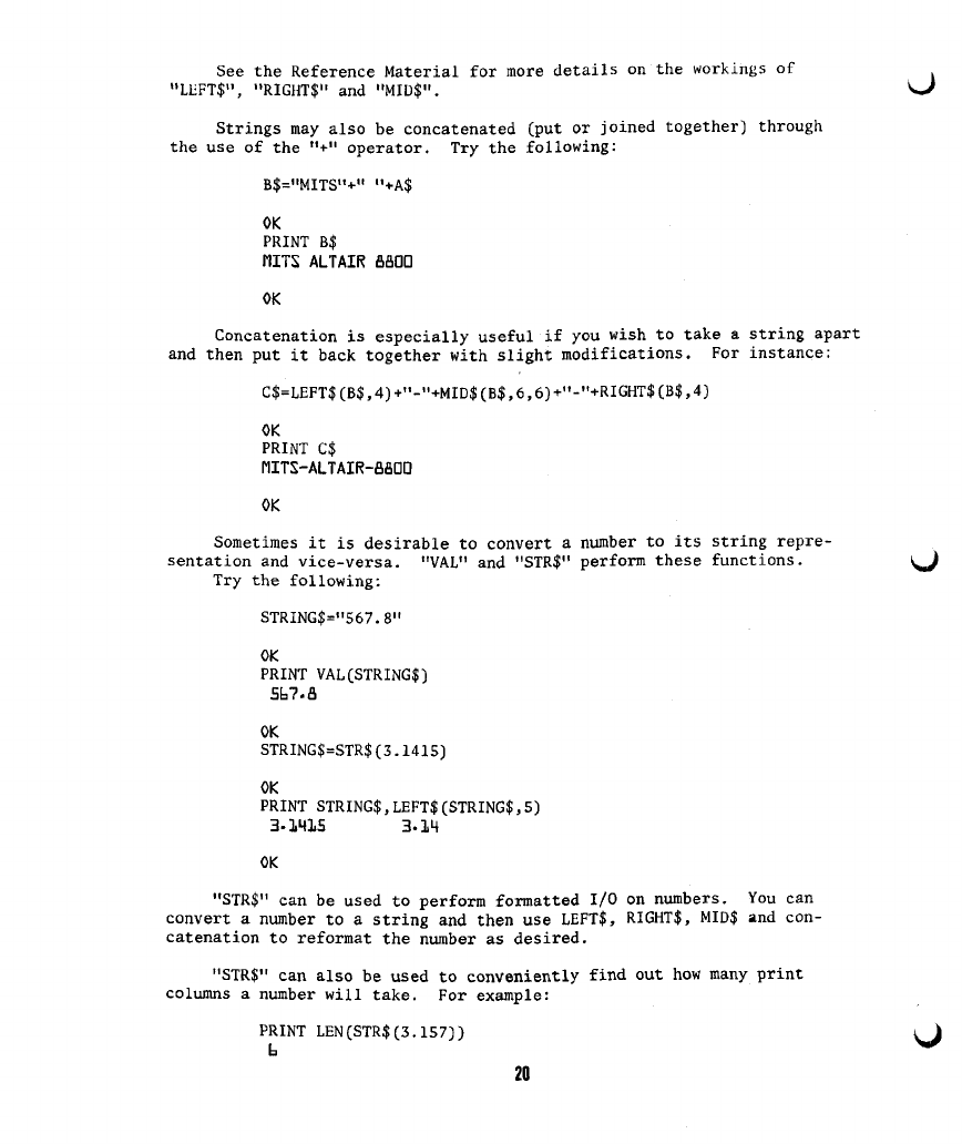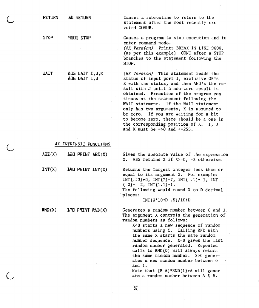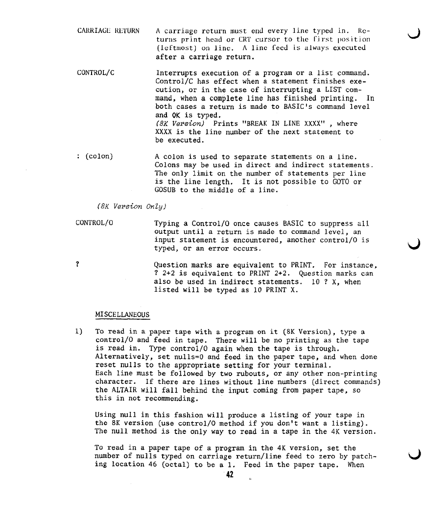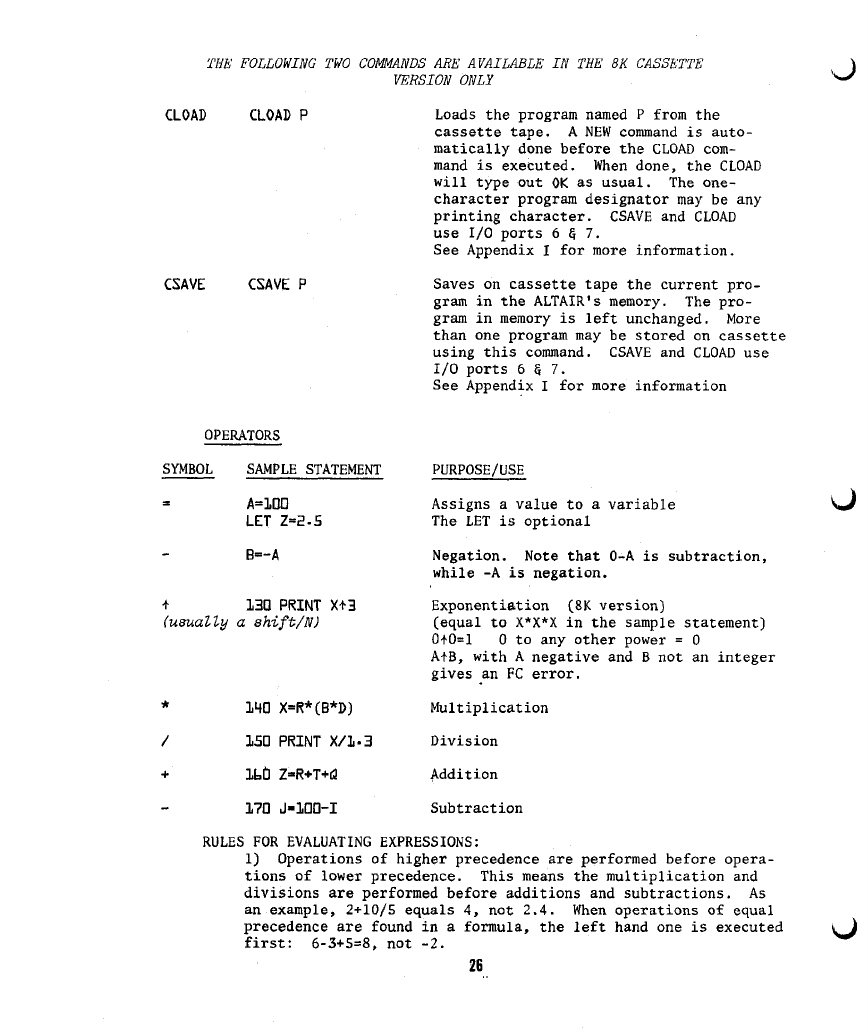 The following are additions and corrections to the ALTAIR BASIC REFERENCE