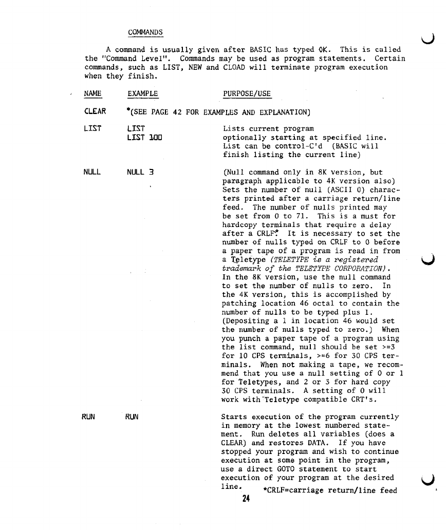 as described under the "NULL" command on page 23 of the BASIC manual.