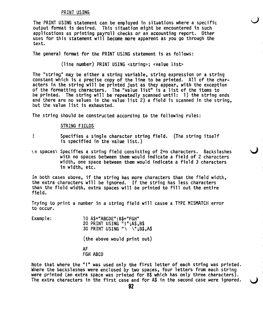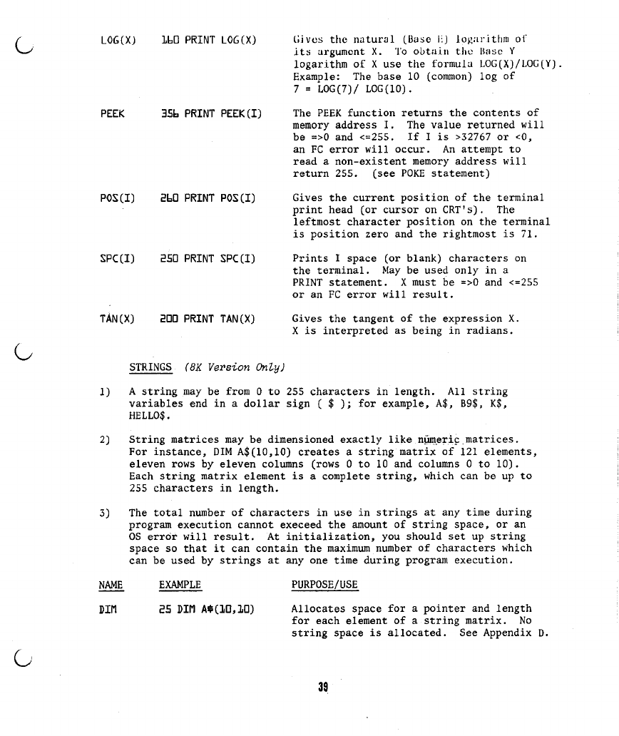 unchanged. When BASIC is brought up, the amount of string space is