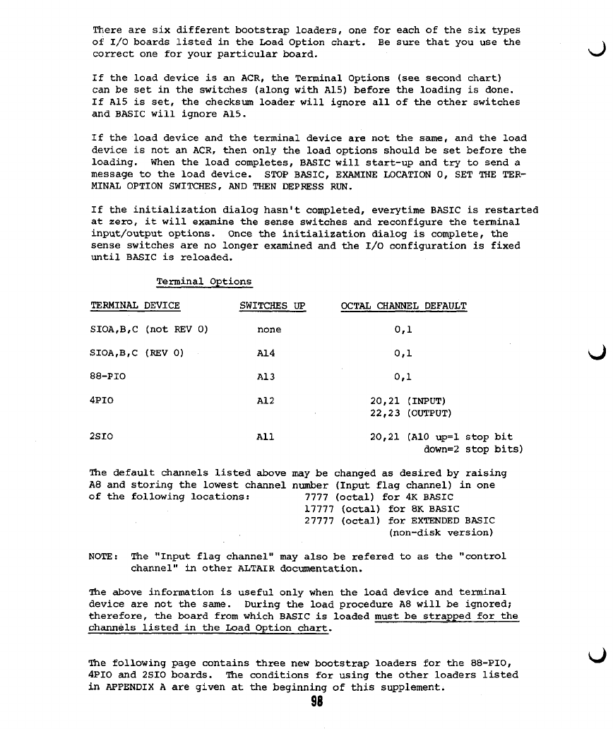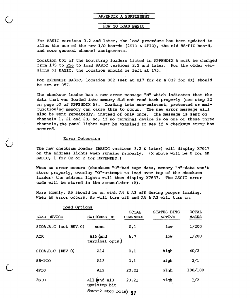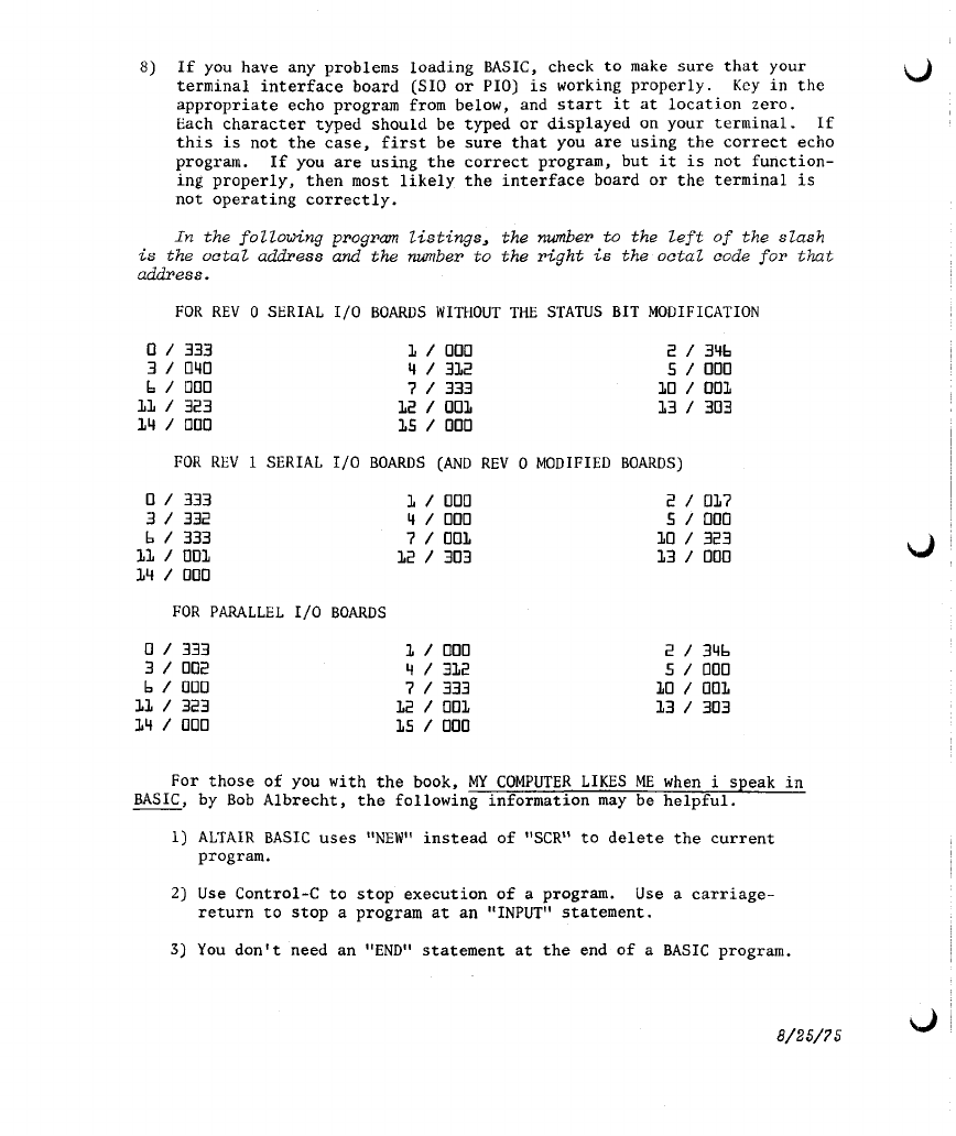 1) If you are loading BASIC from paper tape, be sure your Serial I/O