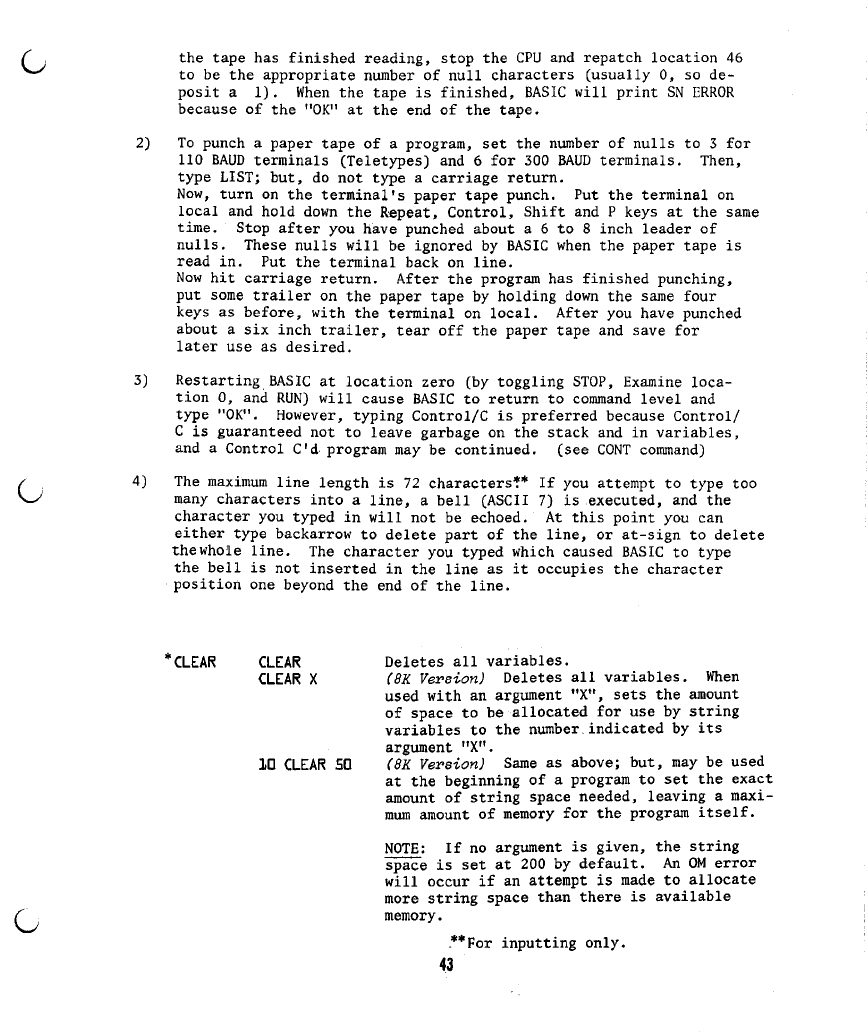 3) On page 42, under the "CLEAR" command, It is stated that "CLEAR" with