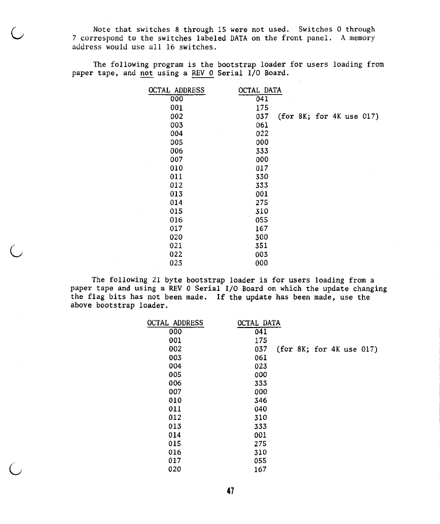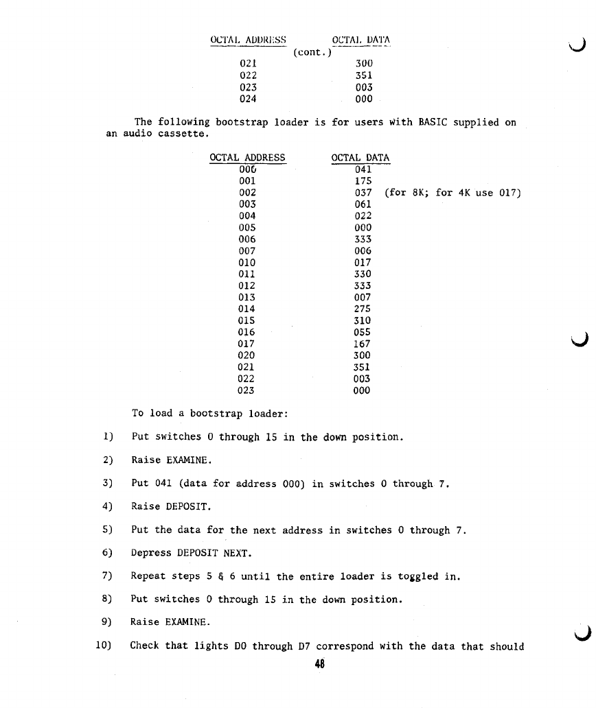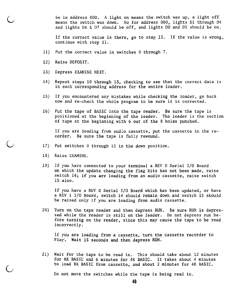 6) If you get a checksum error while loading BASIC from a paper tape or a