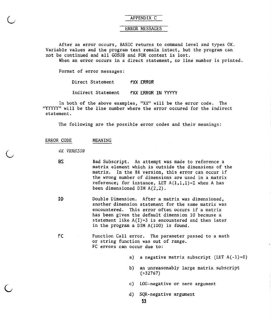 C) ERROR MESSAGES 53