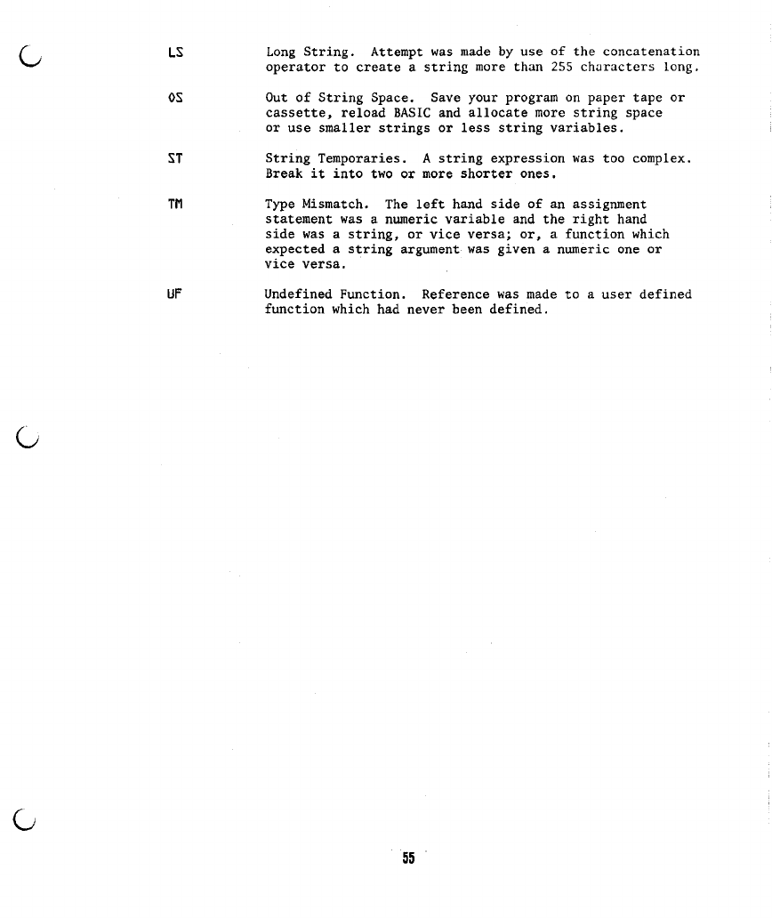 2) On page 53 in Appendix C, the meaning for an "OS" error should read: