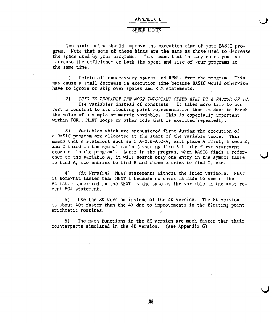 E) SPEED HINTS 58