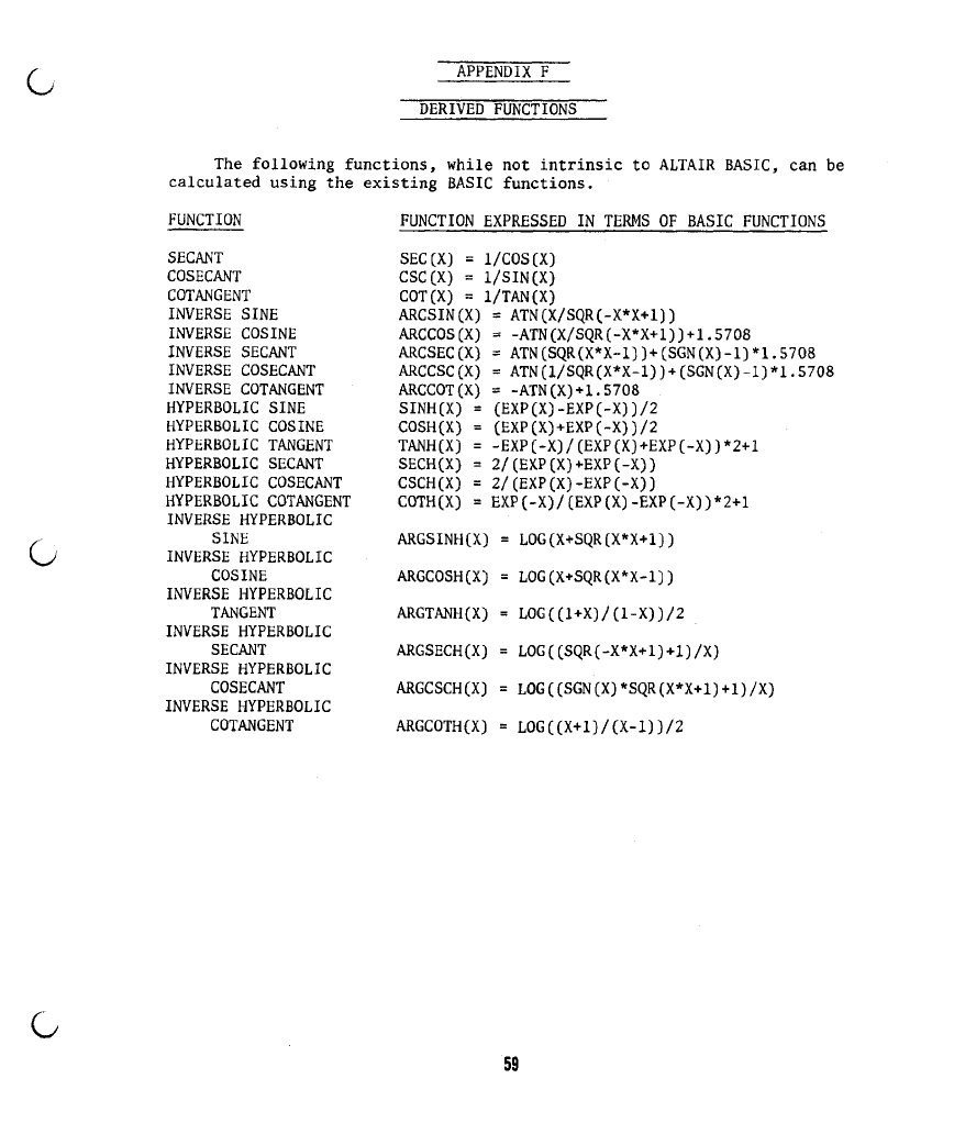 F) DERIVED FUNCTIONS 59