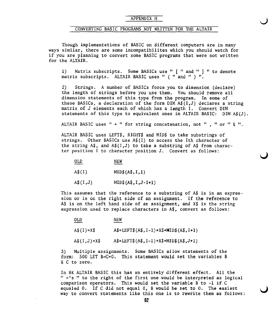 H) CONVERTING BASIC PROGRAMS NOT