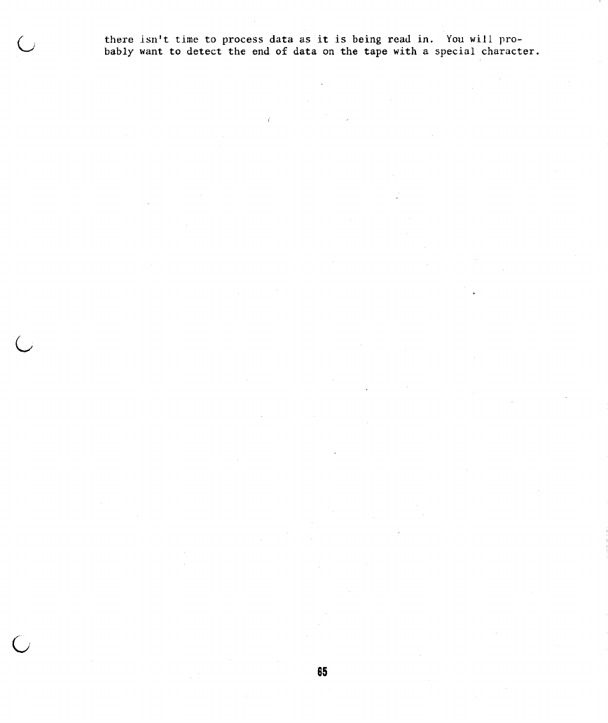 feet of a paper tape, or the last 10 to 15 seconds of a cassette. If
