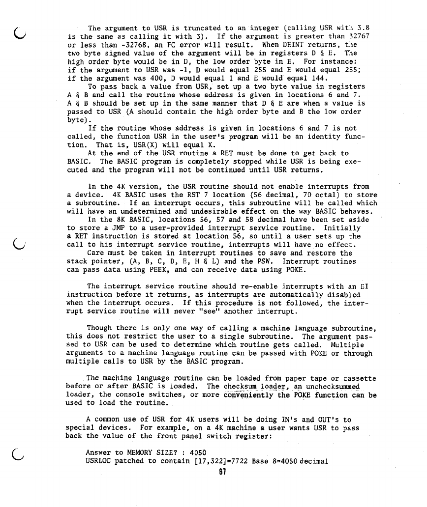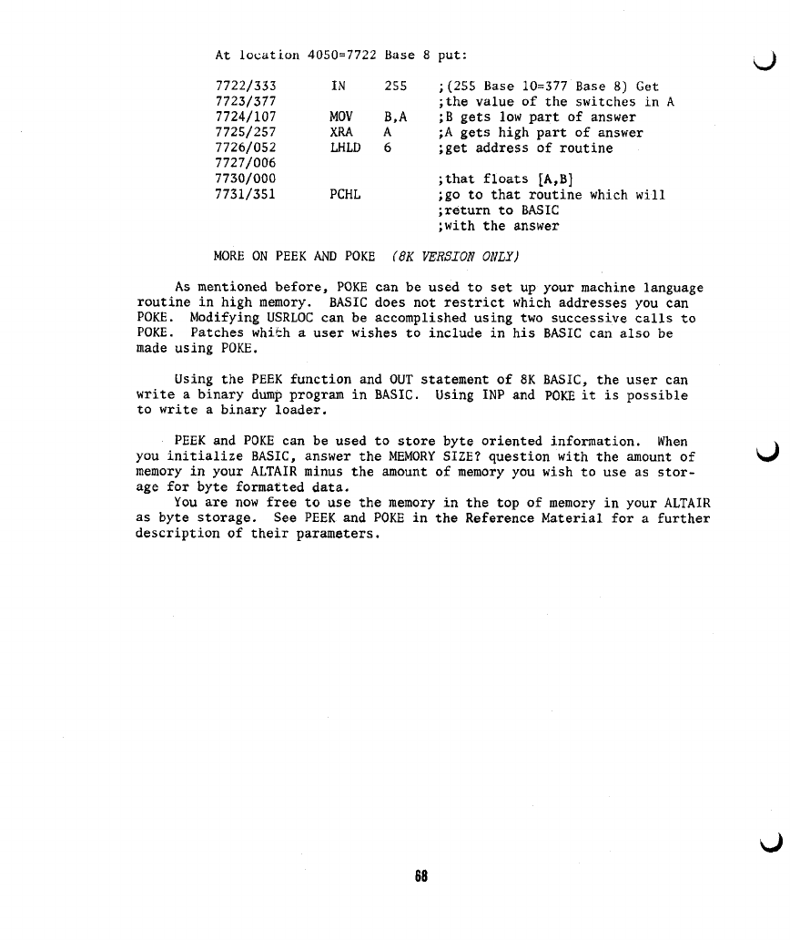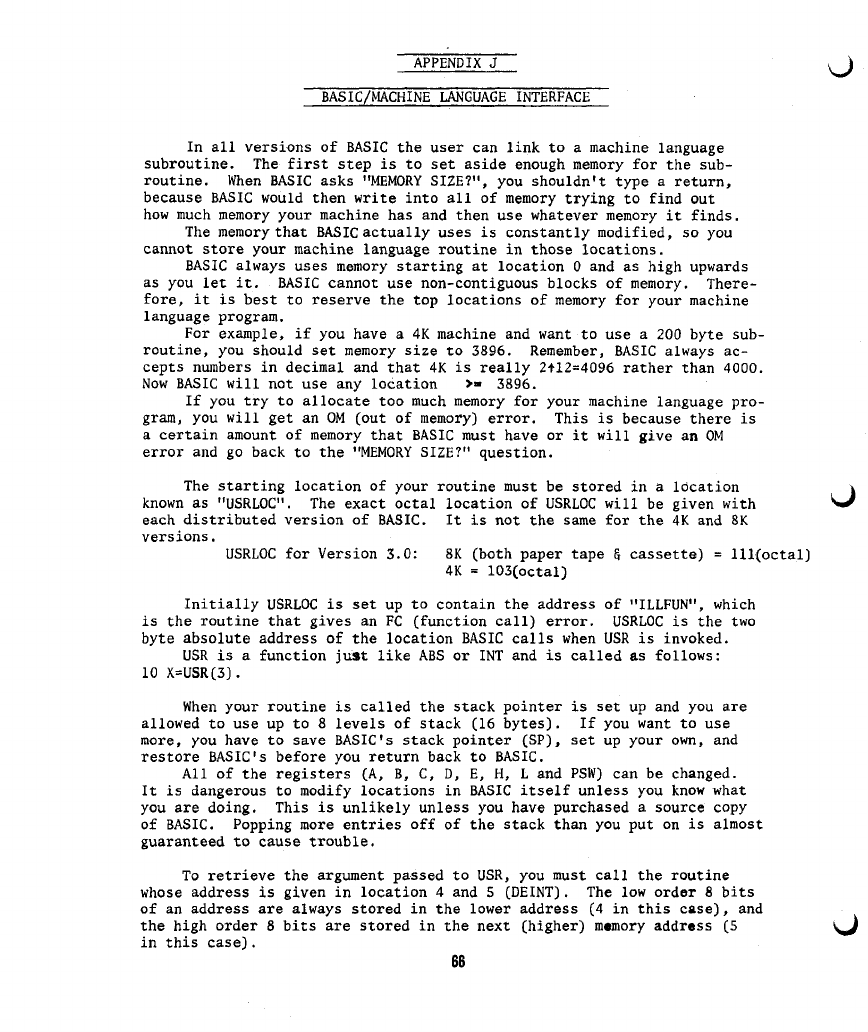 J) BASIC/MACHINE LANGUAGE INTERFACE 66