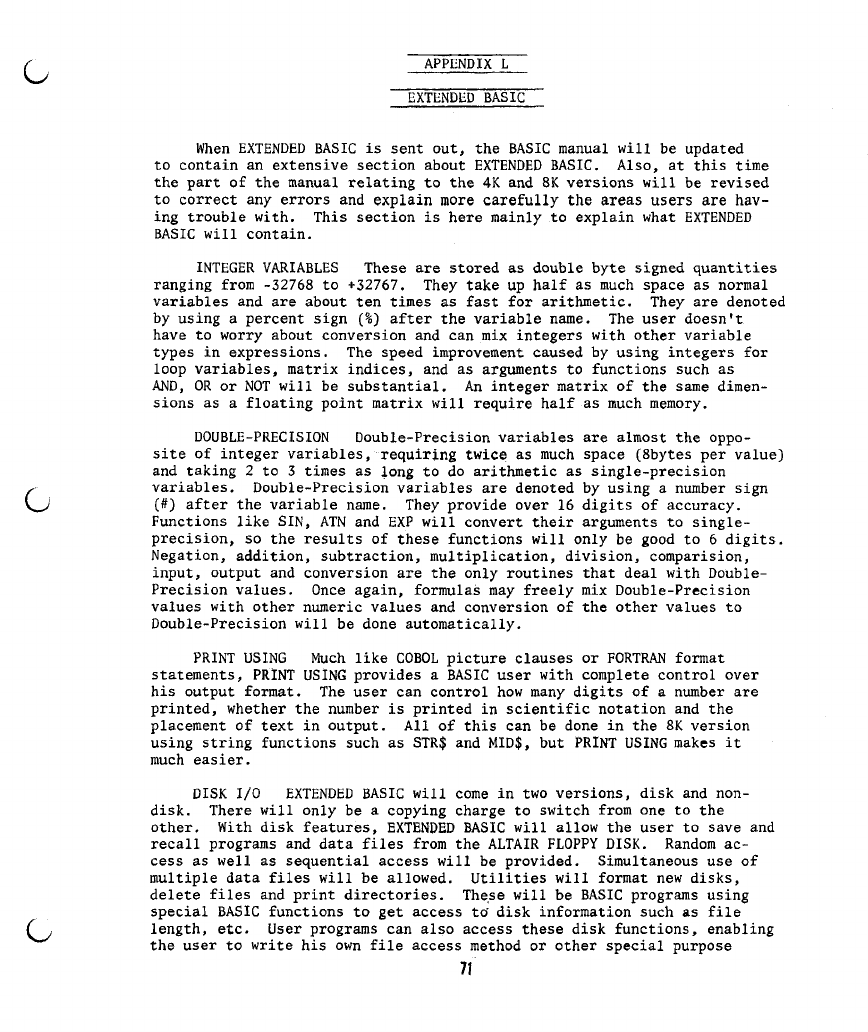 L) EXTENDED BASIC 71