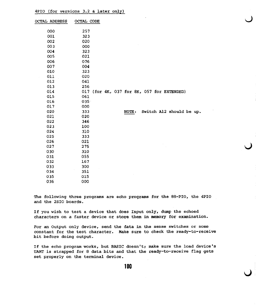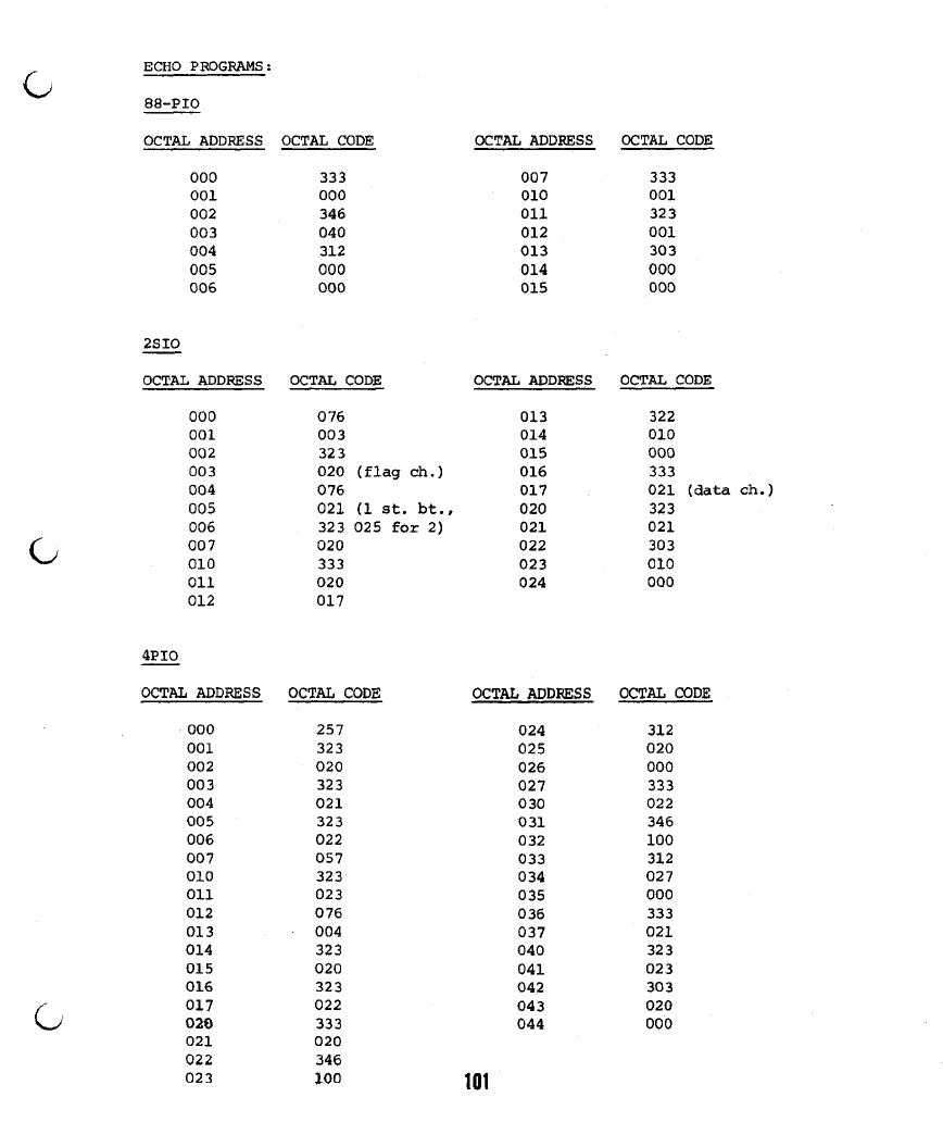 appropriate echo program from below, and start it at location zero.