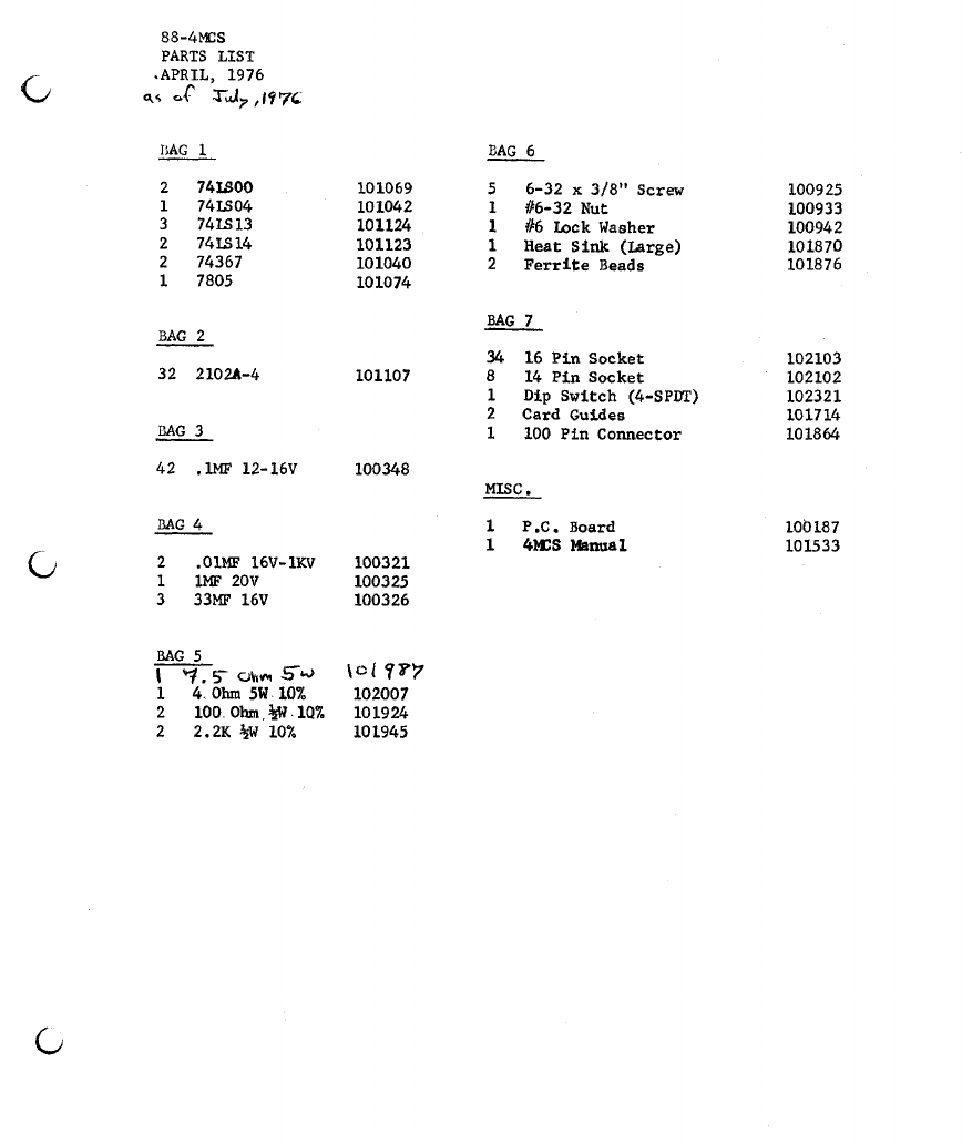 PARTS LIST