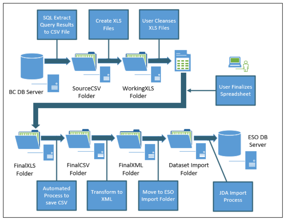 Dataset Import Folder – This is the standard JDA ESO folder that has directories for the client and