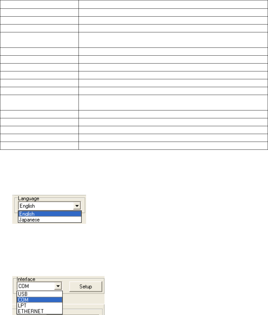 • Interface: USB, RS232C, Centronics, or LAN