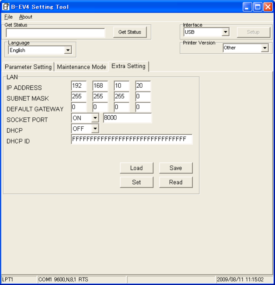 When the [Read] button is clicked, the network settings currently programmed for the printer are read