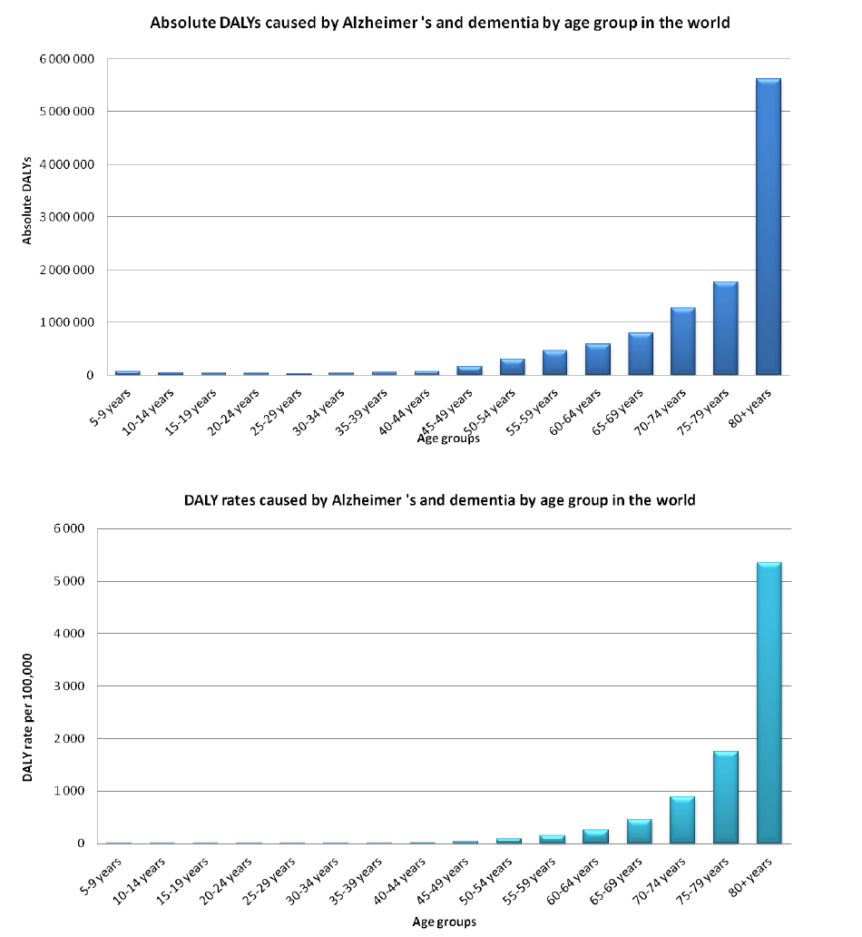ANNEX 6.11.7: DALYs and death rates caused by Alzheimer disease and other dementia by age group and