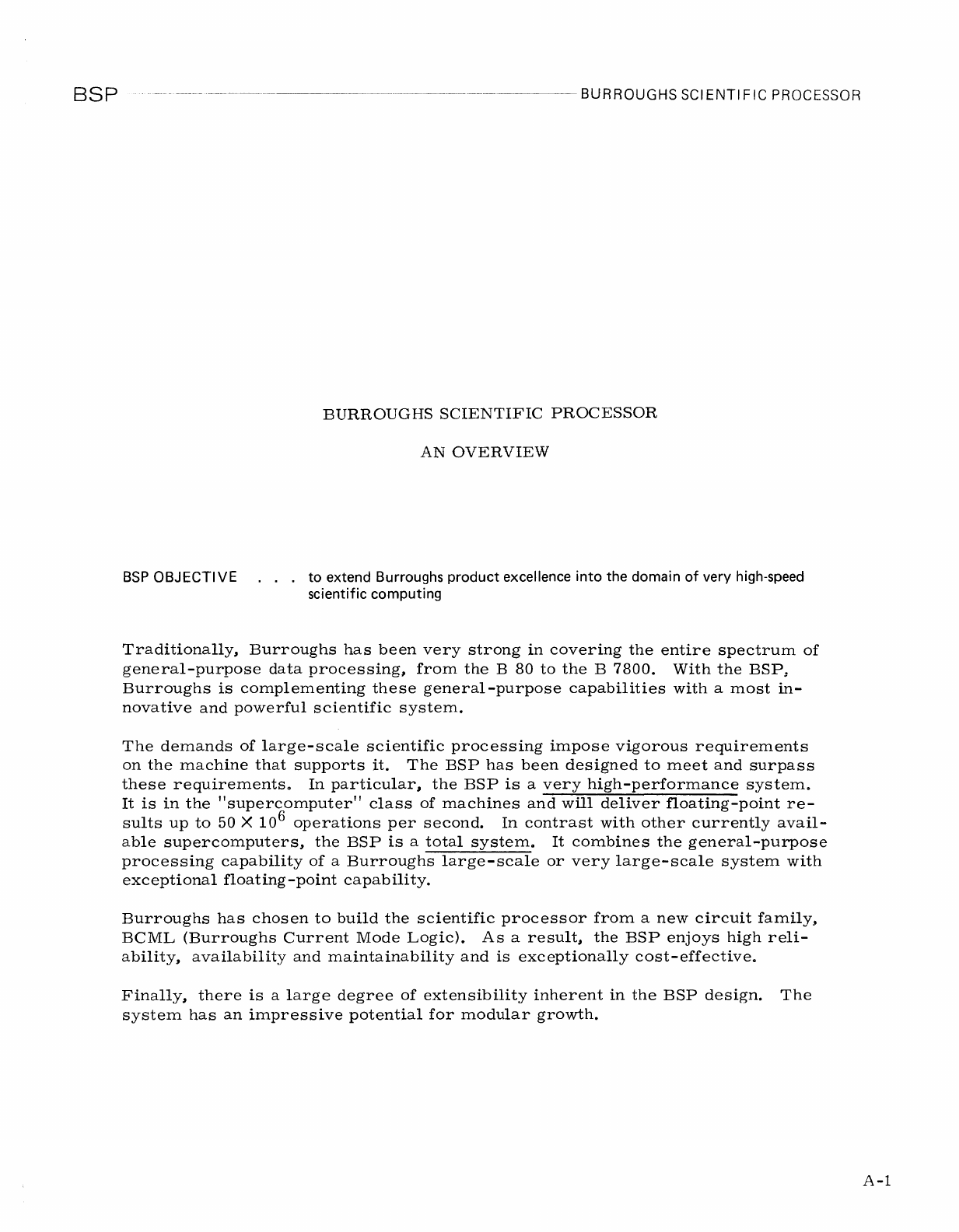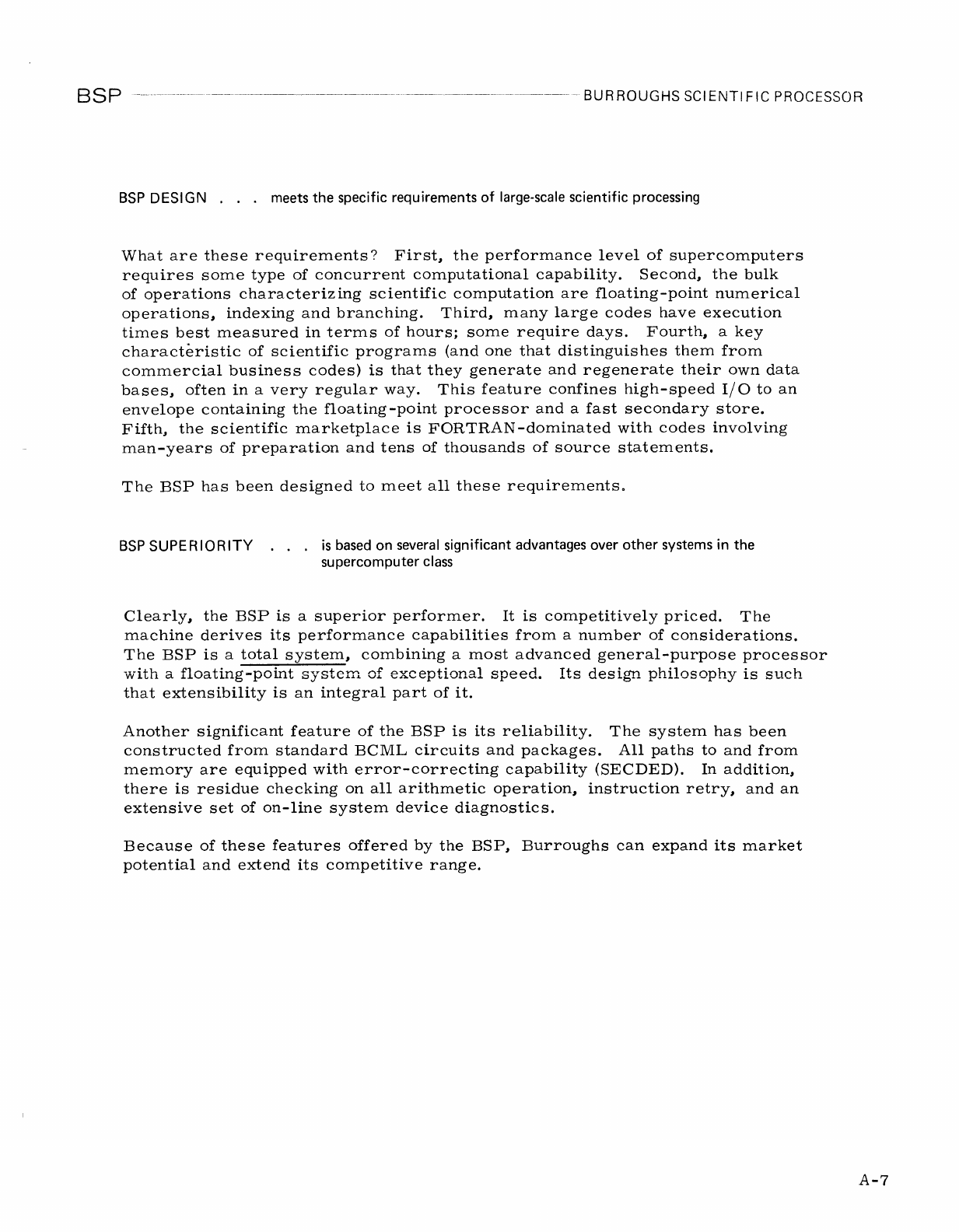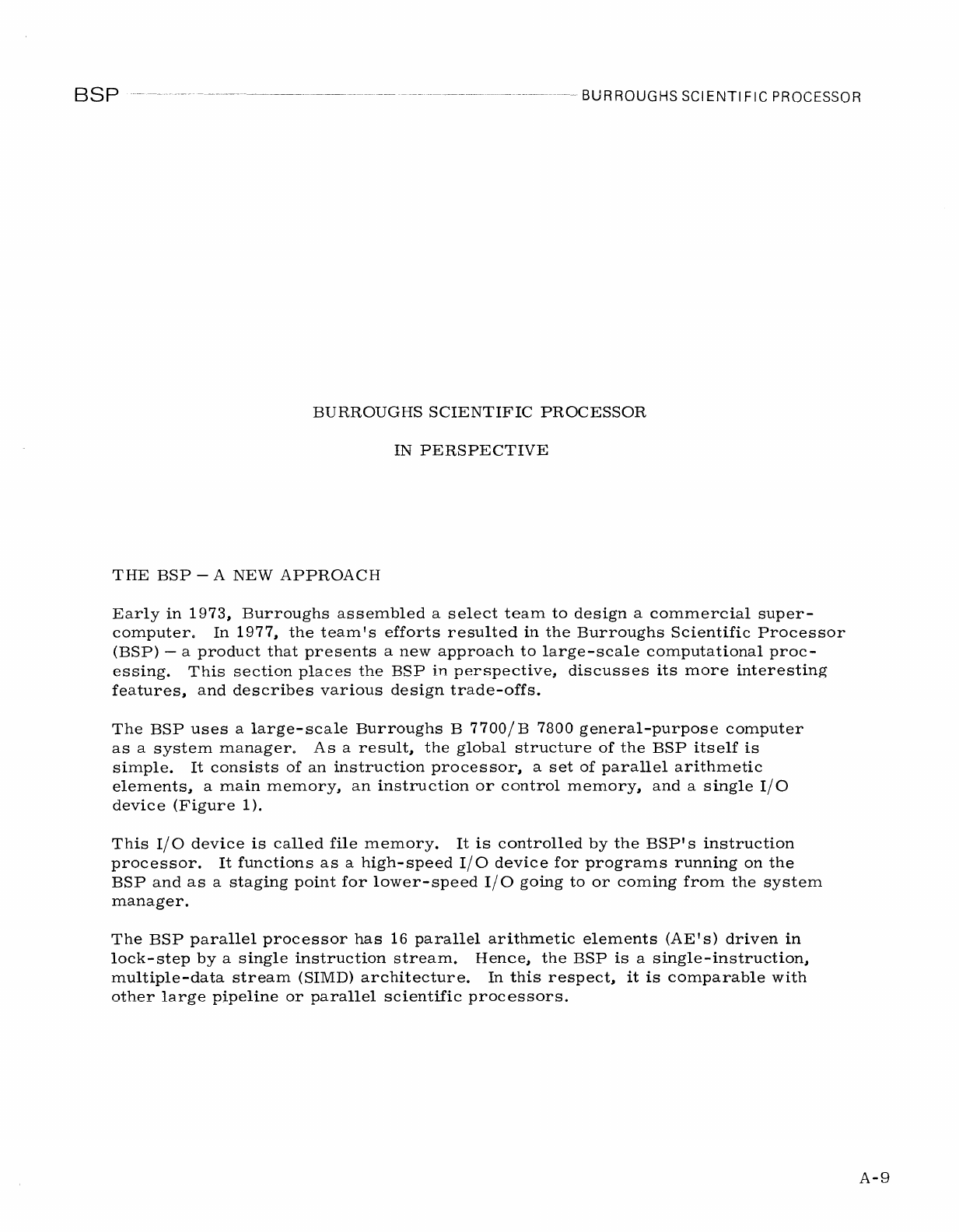 BURROUGHS SCIENTIFIC PROCESSOR
