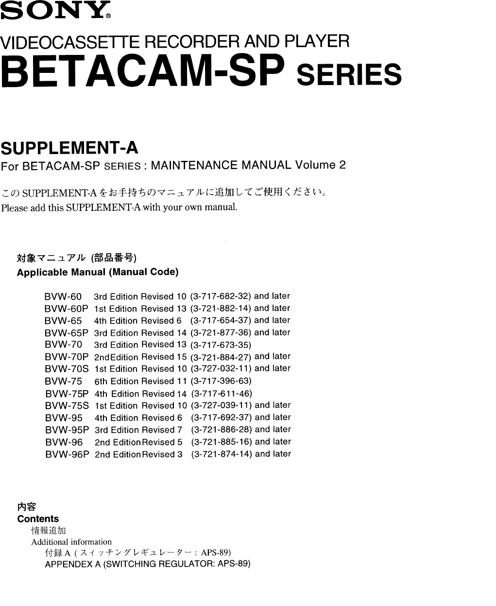 BETACAM-SP SERIES