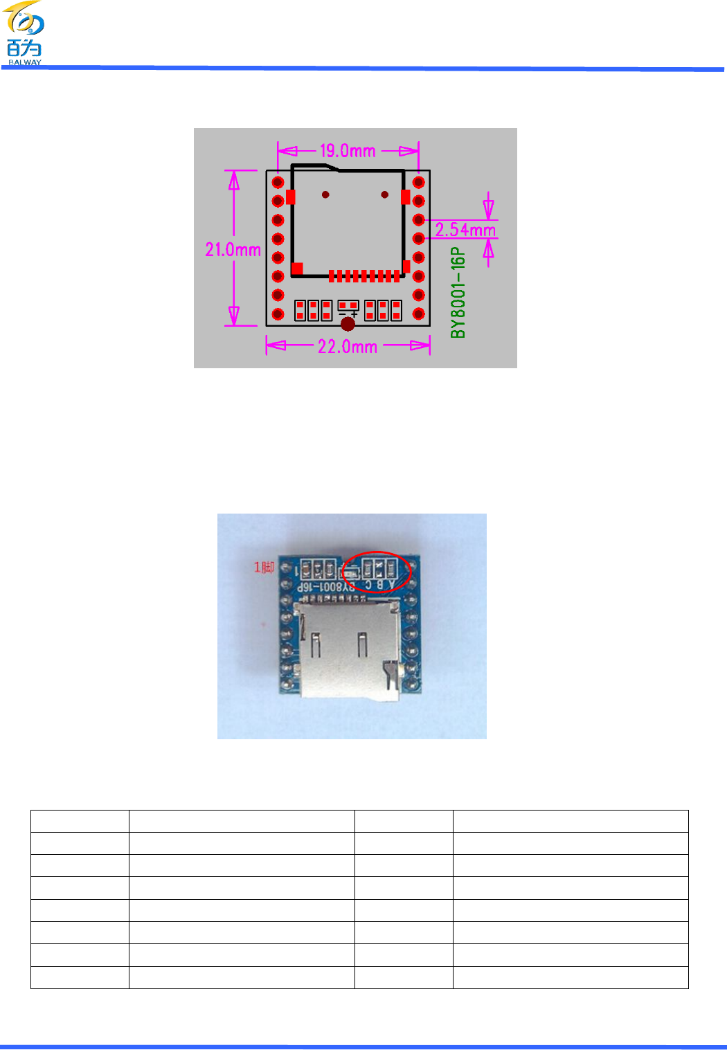 Shenzhen Balway Electronic BY8001-16P voice module manual V1.2