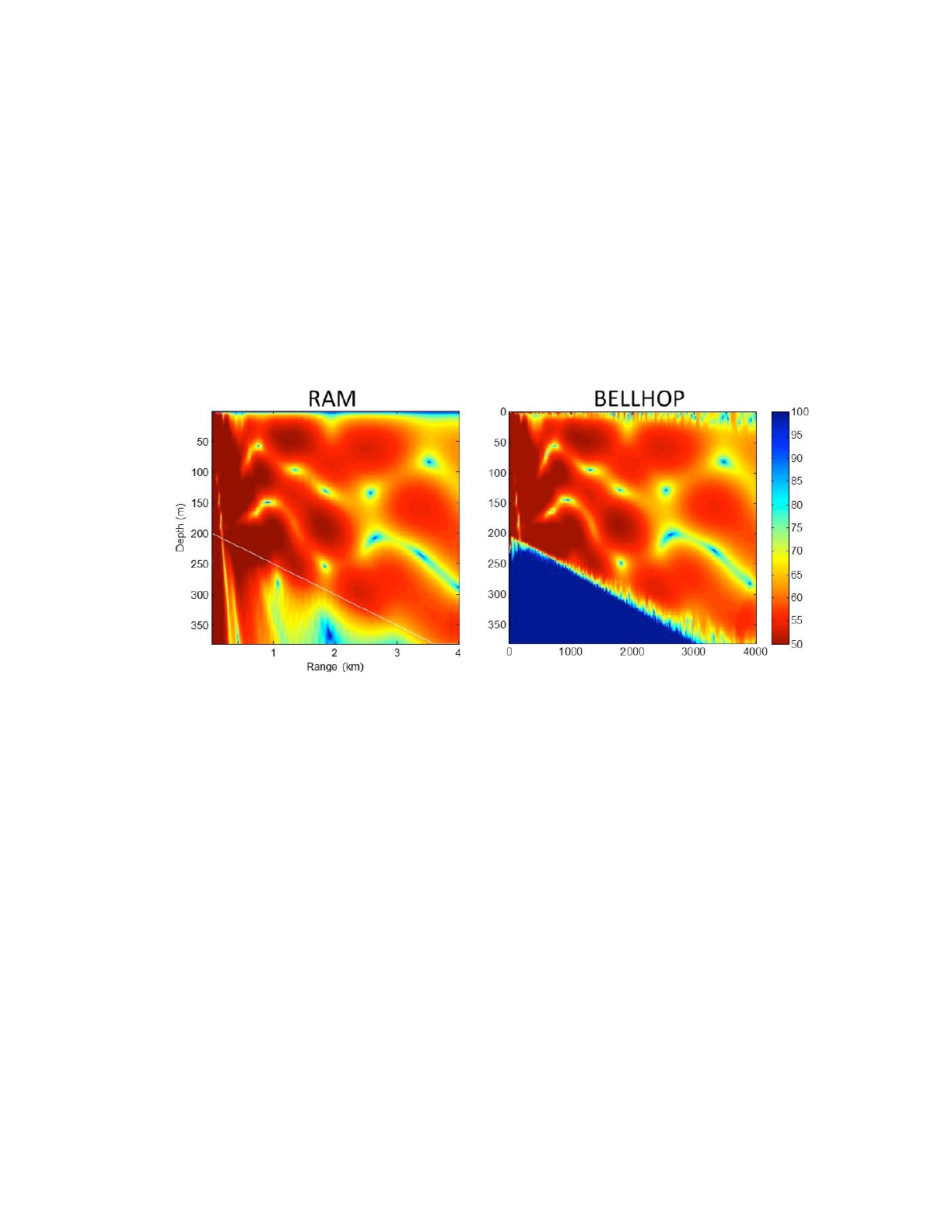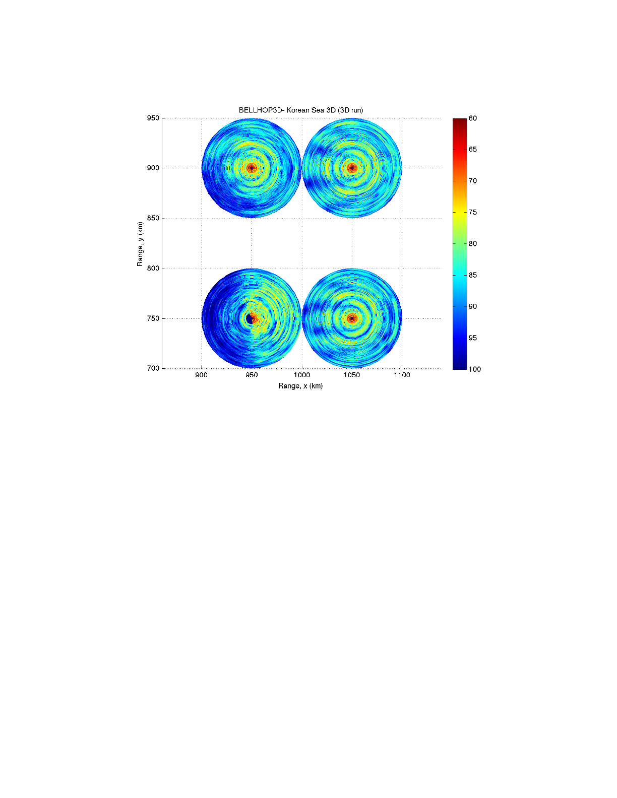 Figure 44 shows the results with the new incoherent and semi-coherent options in BELLHOP3D.