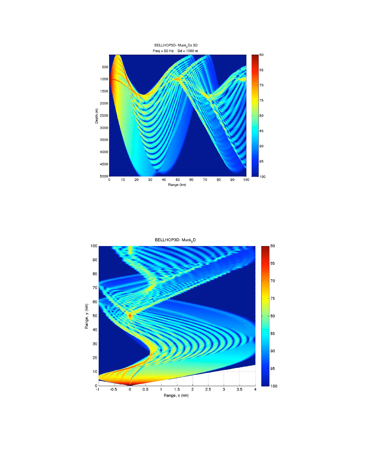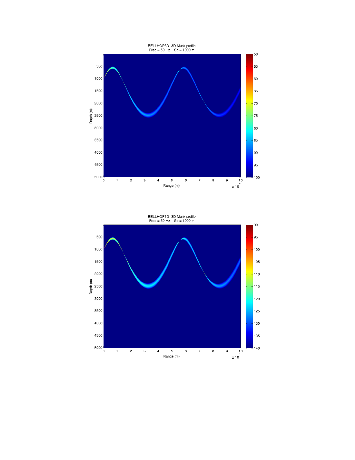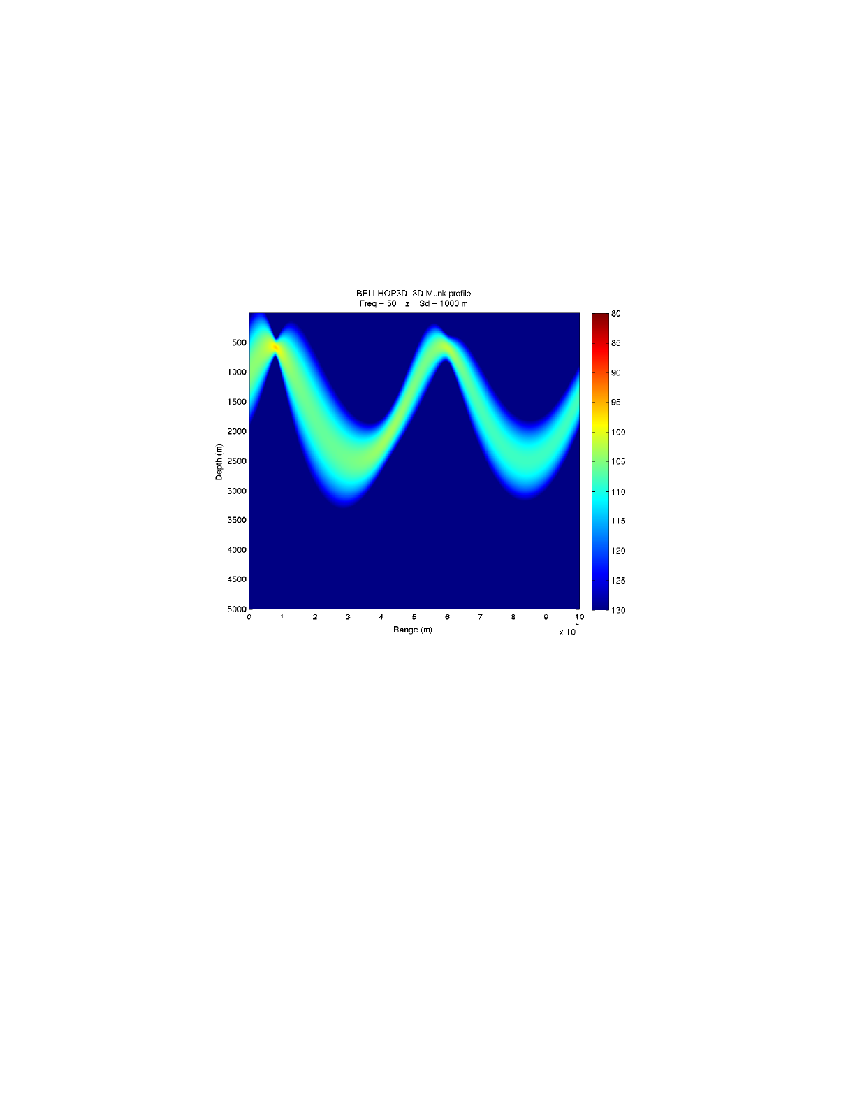 spreading laws. BELLHOP3D can produce a variety of useful outputs including transmission loss,