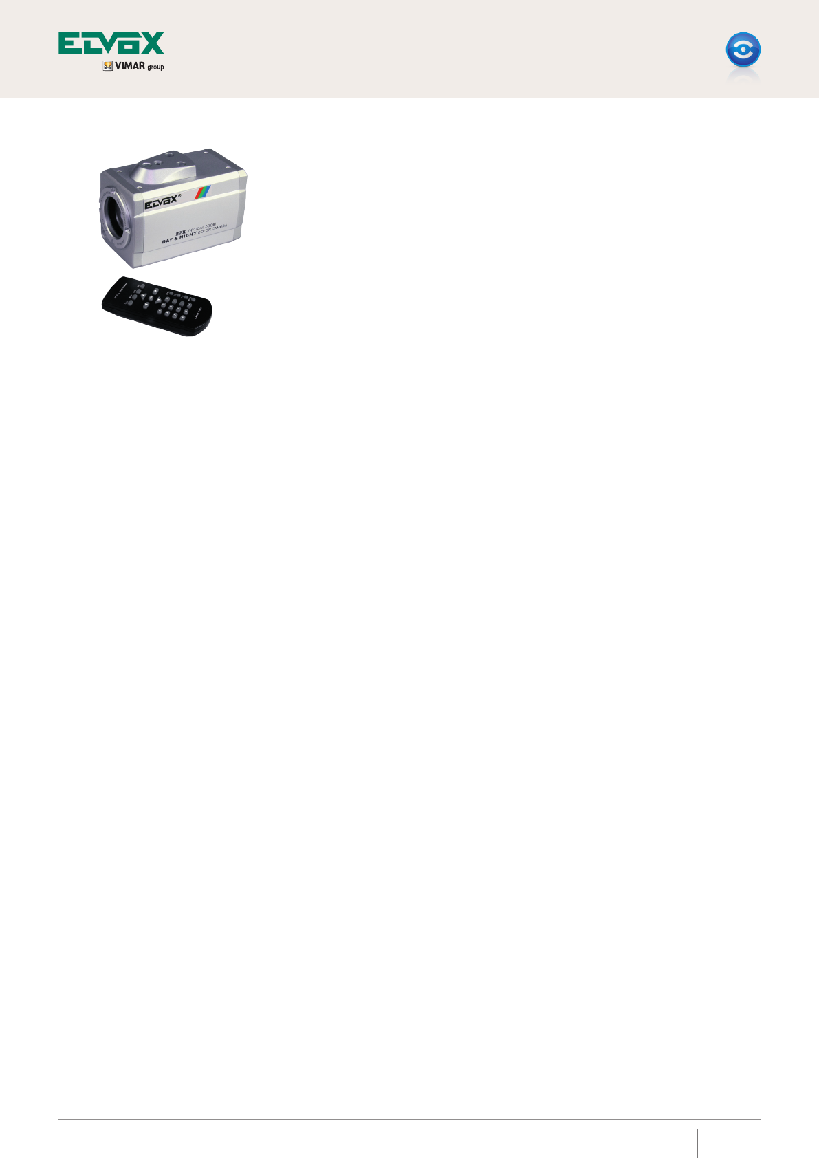 Day & Night colour camera. Supply voltage 12 VDC. Medium resolution. 1/3" CCD sensor. 12 mm xed lens