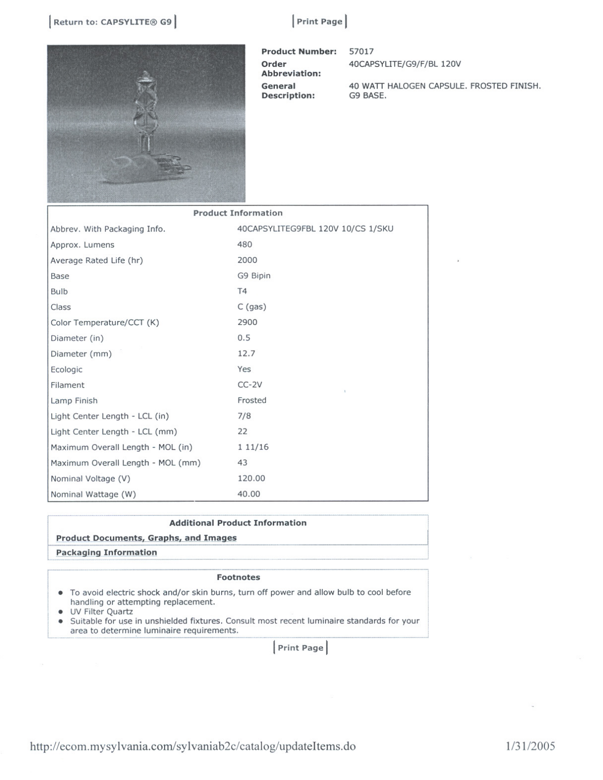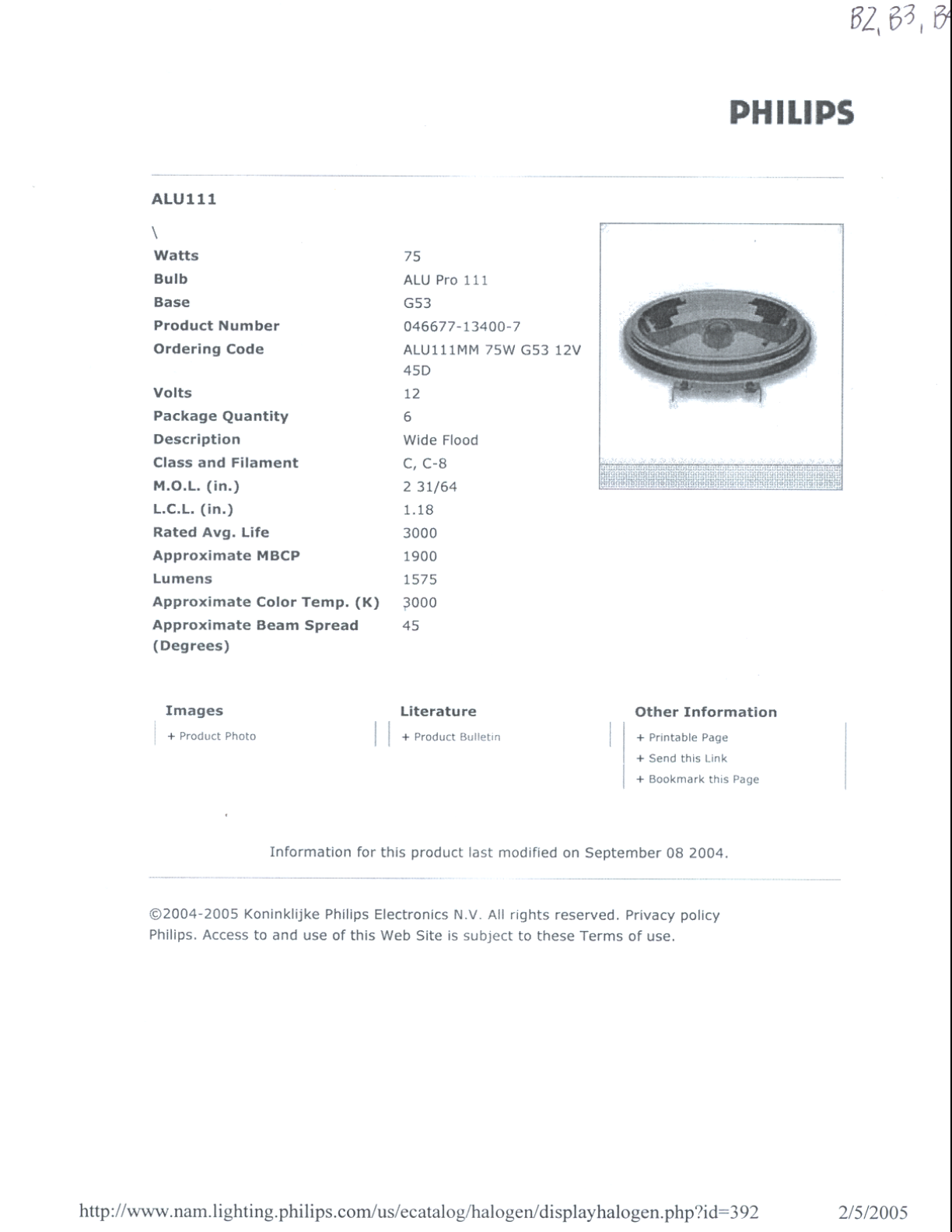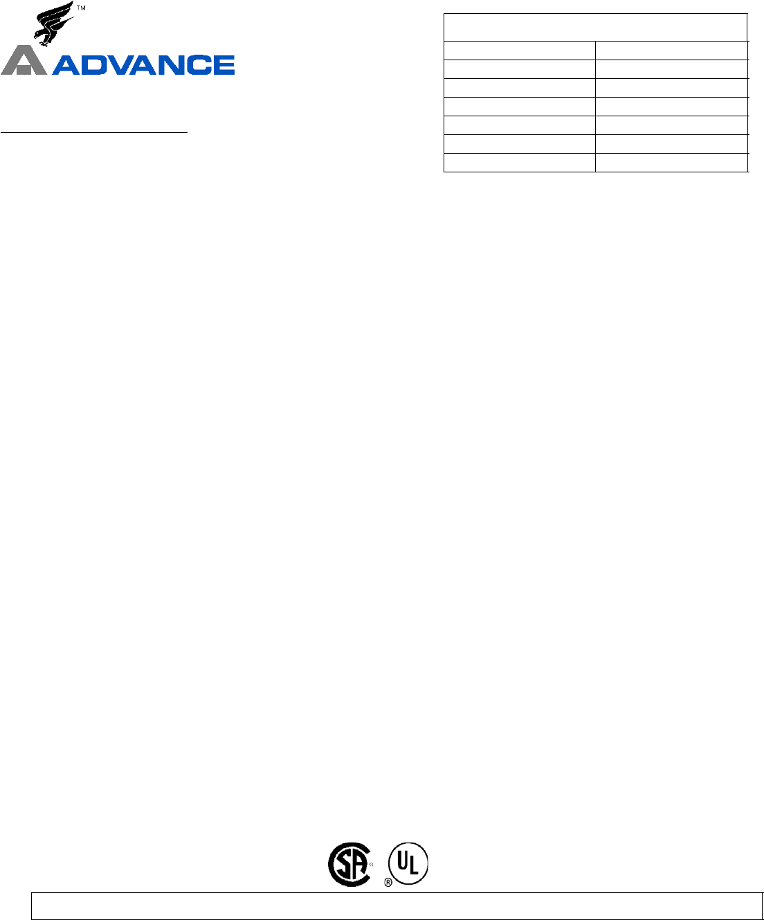 TYPE DESCRIPTION LAMP MANUF. VOLT. TOTAL