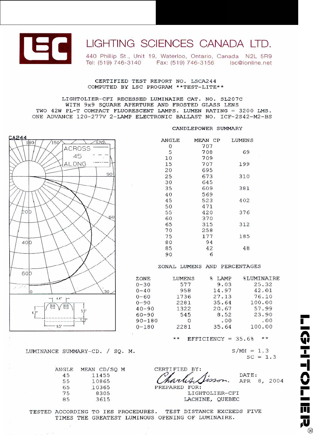 LTD REFL 150M NFL, (1) MHC150/U/MP/4K, 12400 lumens per lamp, 0.51 s/mh, test no. LTL8976